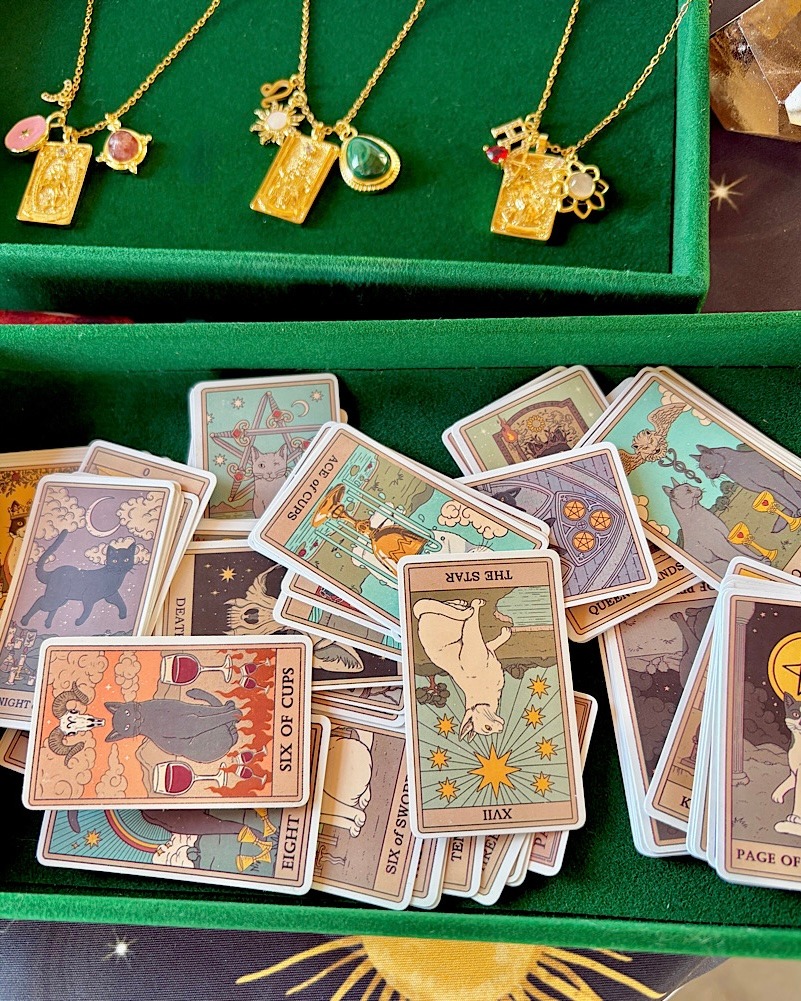 会場では、新たに公式LINEやSNSをフォローくださった方に猫✖️タロットカードをモチーフにしたシールをプレゼント!こちらは一枚引きで、何が出るかはお楽しみに!!