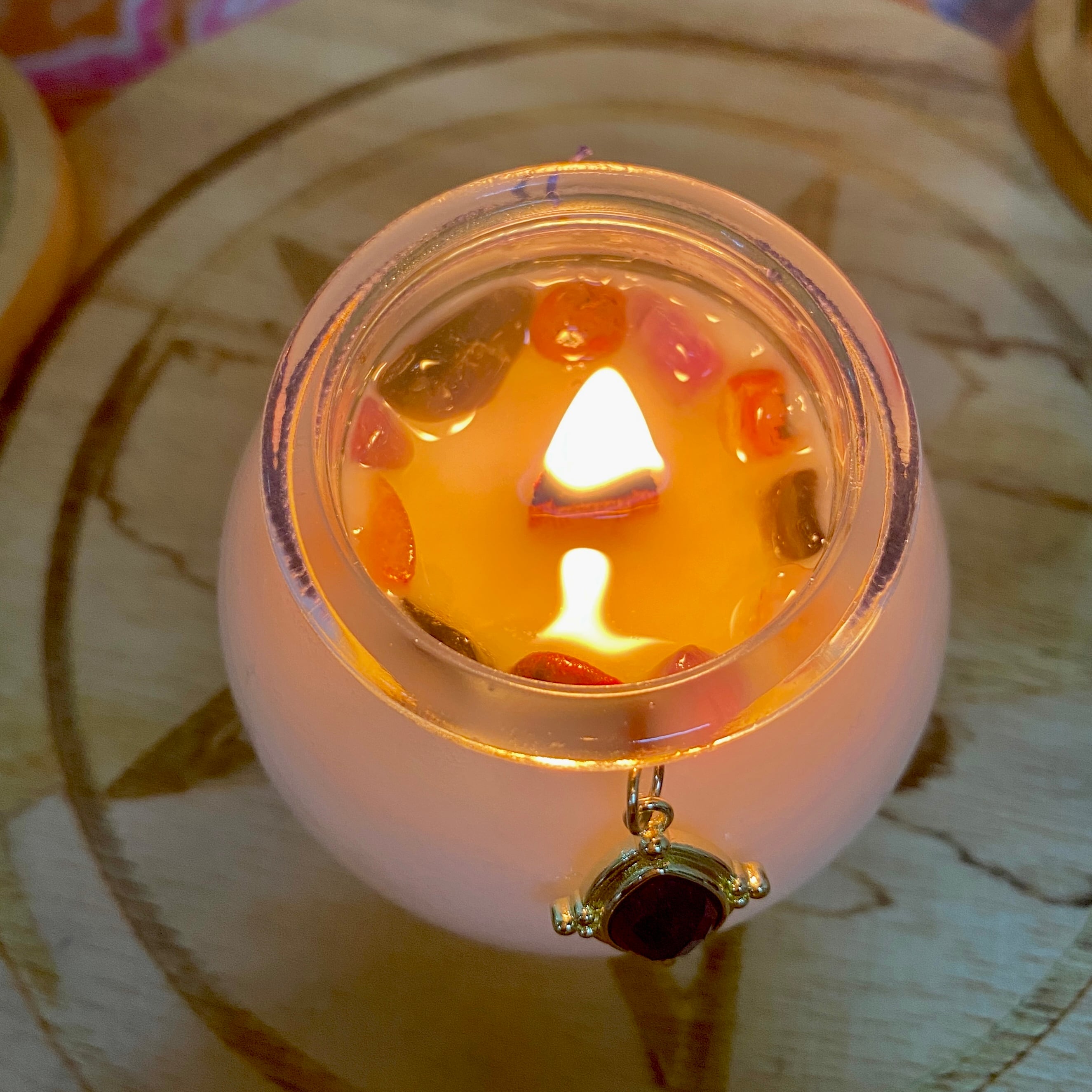 人気の天然石で作った魔法のお守りCharm potからインスピレーションを受けたキャンドル。