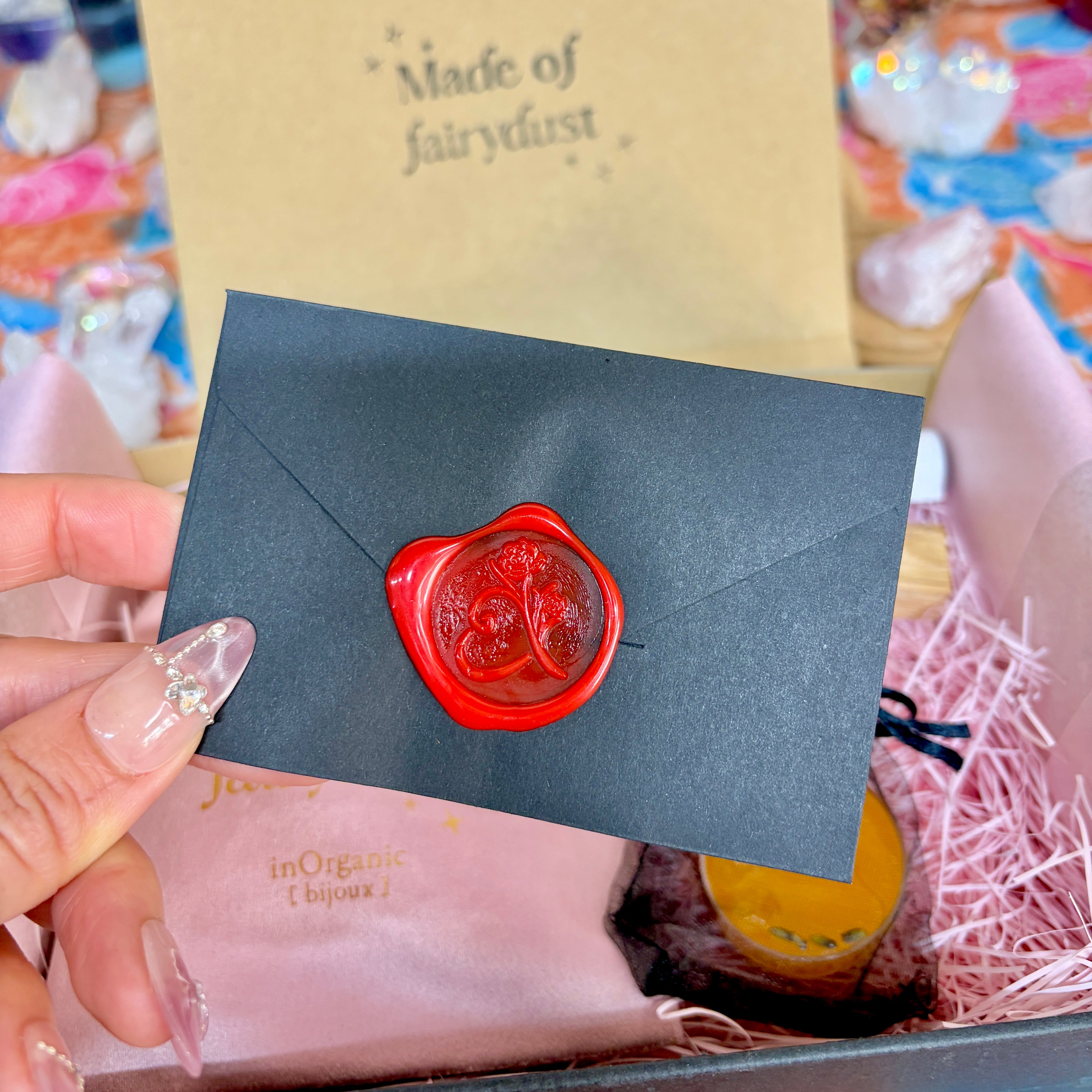 妖精の粉を振りかけて、黒い小箱に入れてお届けします。