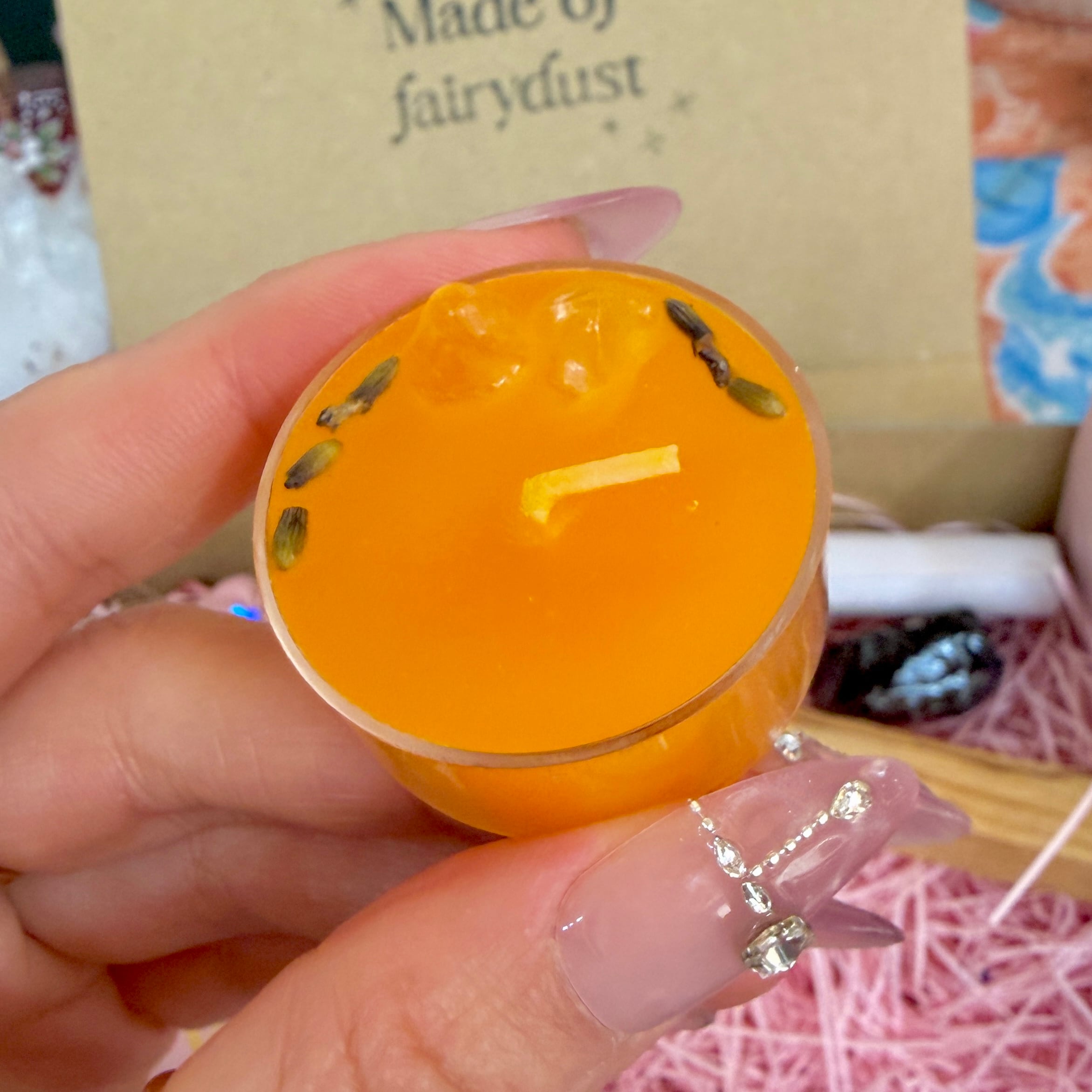 ・クリスタルキャンドル(蜜蝋ワックスに水晶とラベンダーをあしらいました)