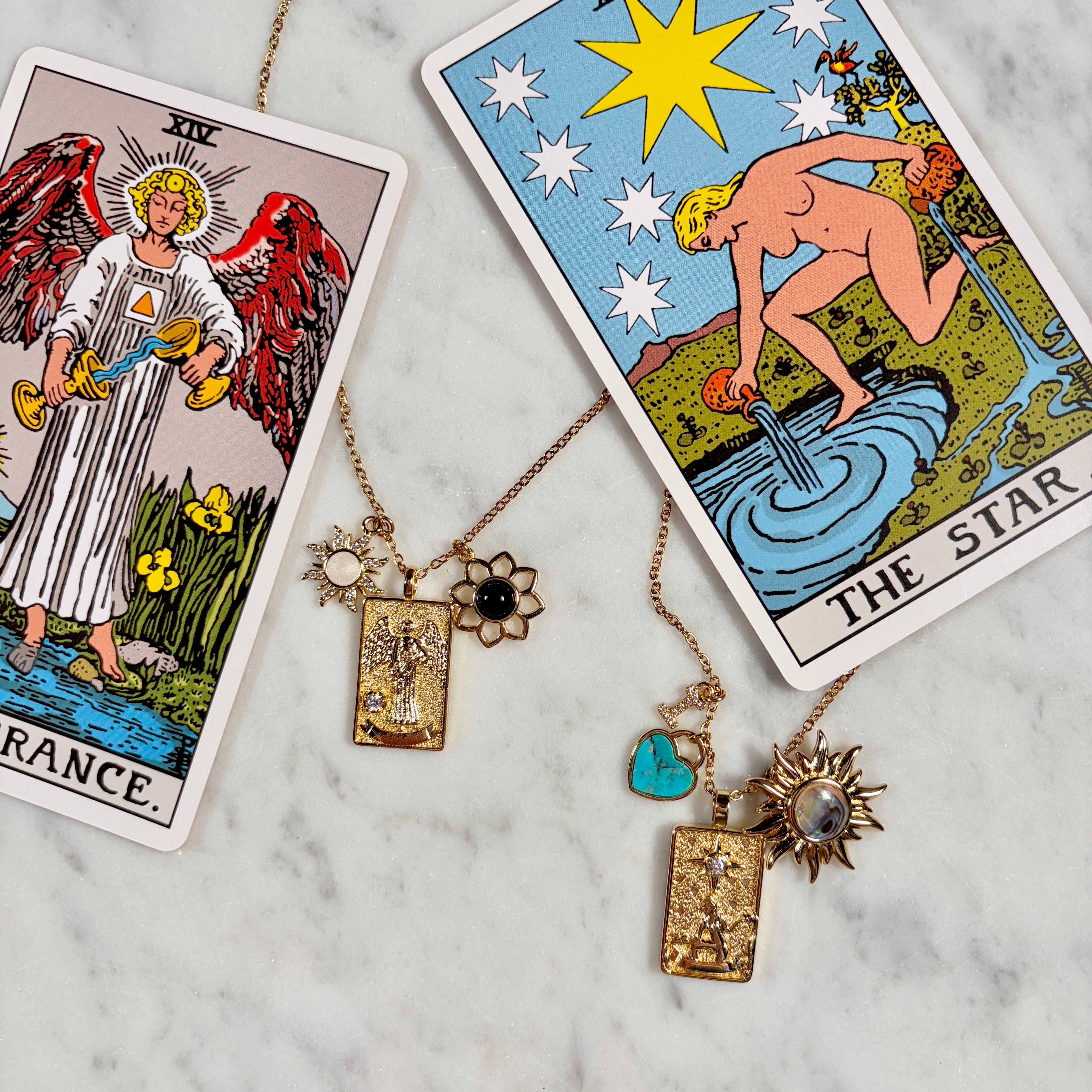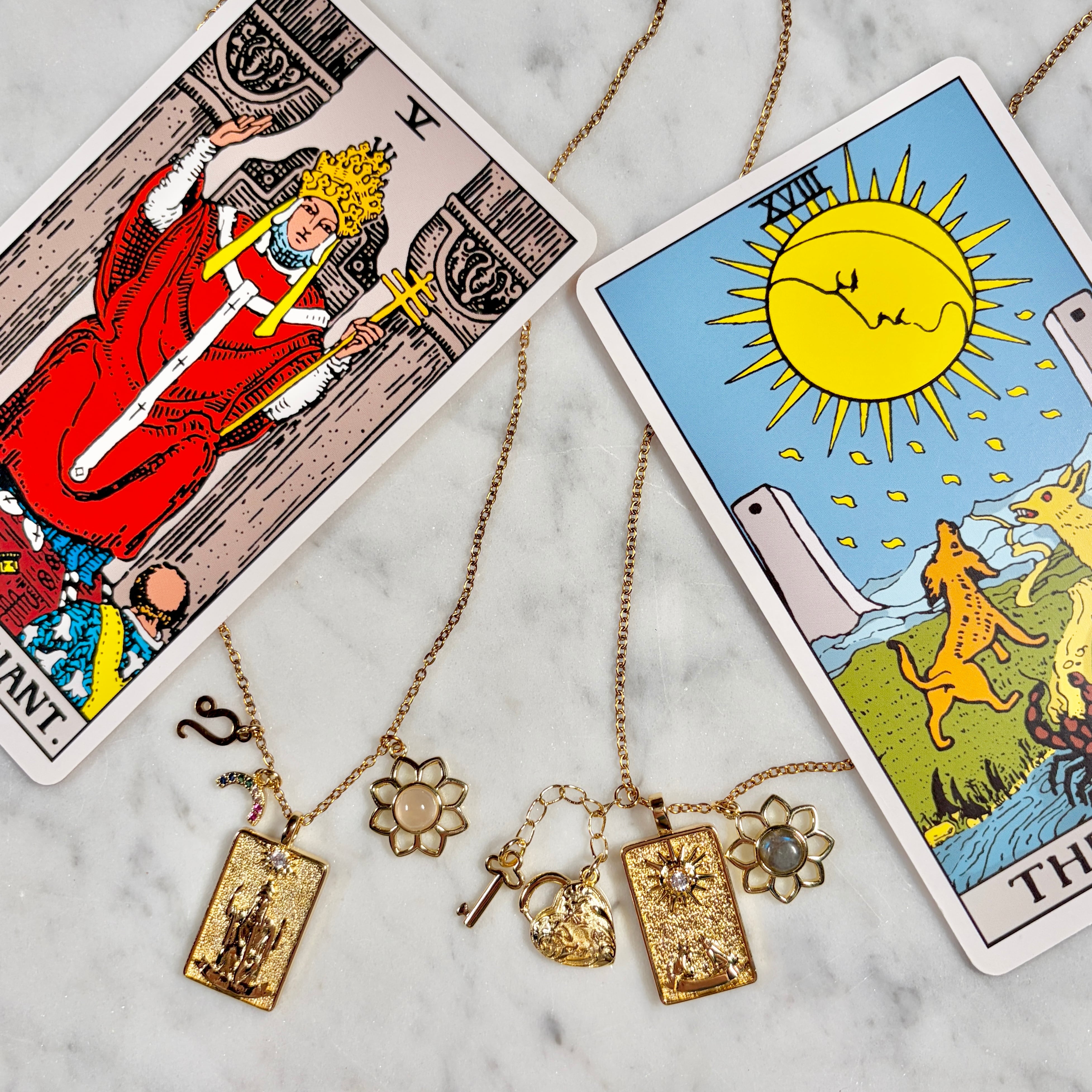魔女はこの遊び心がたっぷり詰まったタロットカードに魅力を感じ、自分だけが解釈する秘密のお守りとして身につけられるネックレスにアレンジしました。