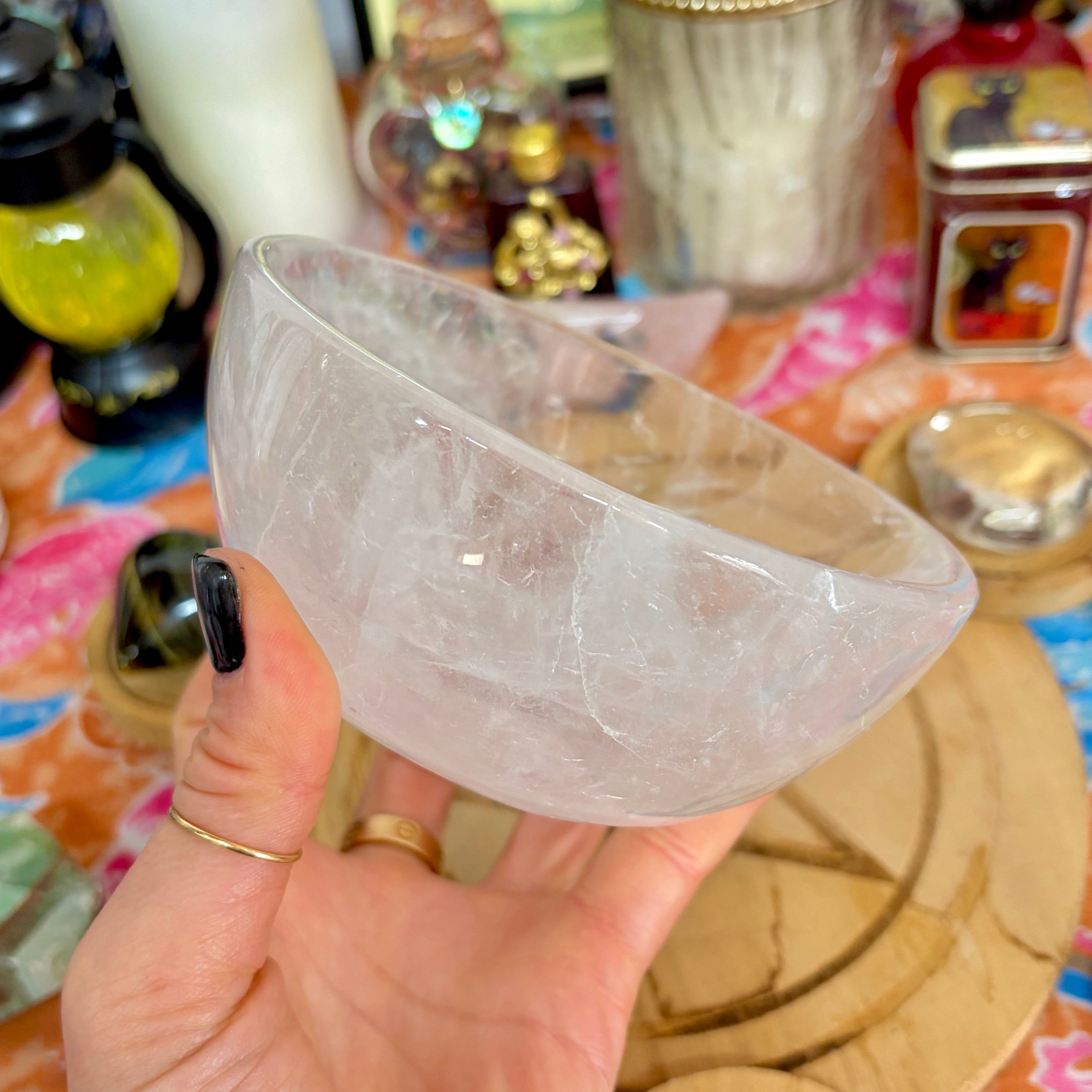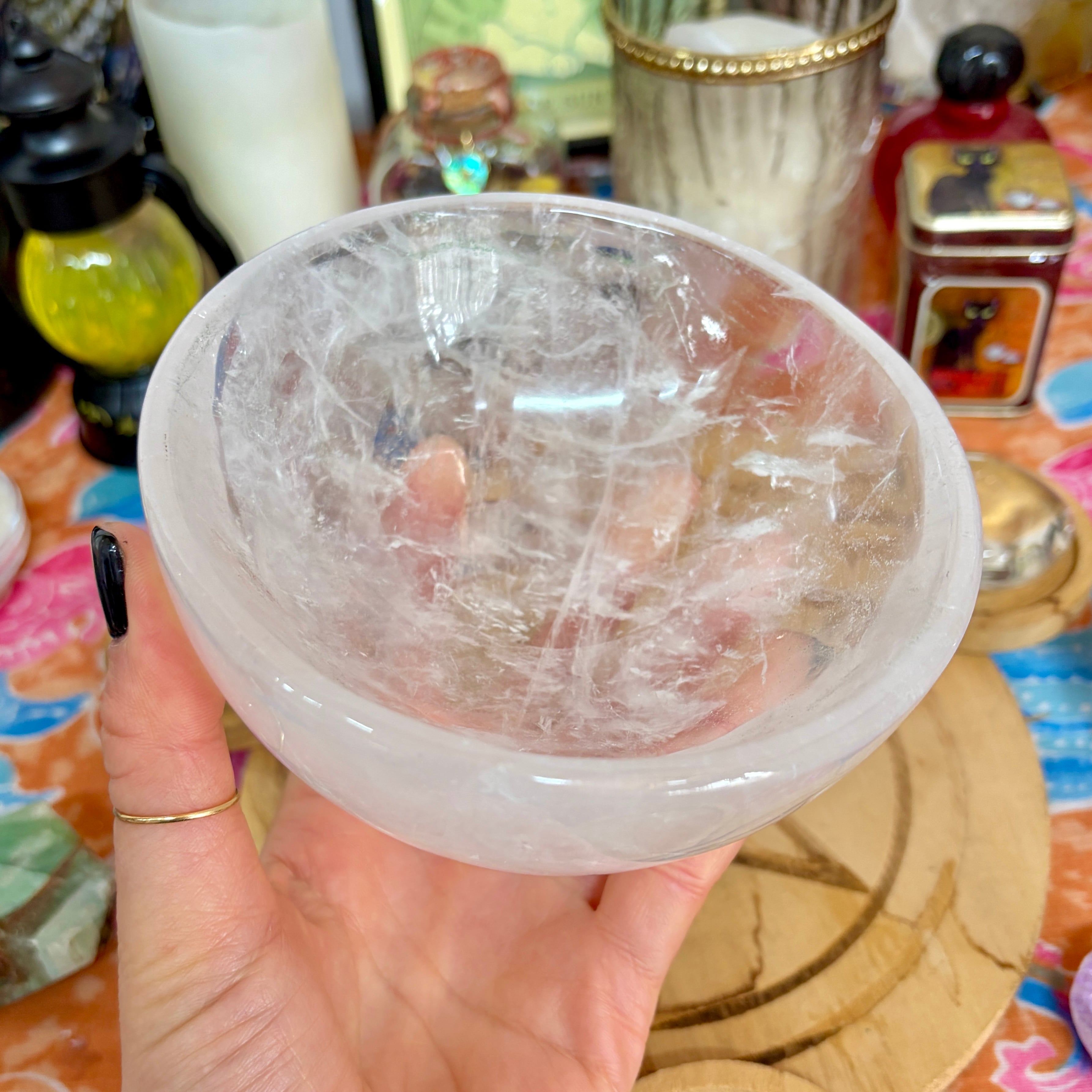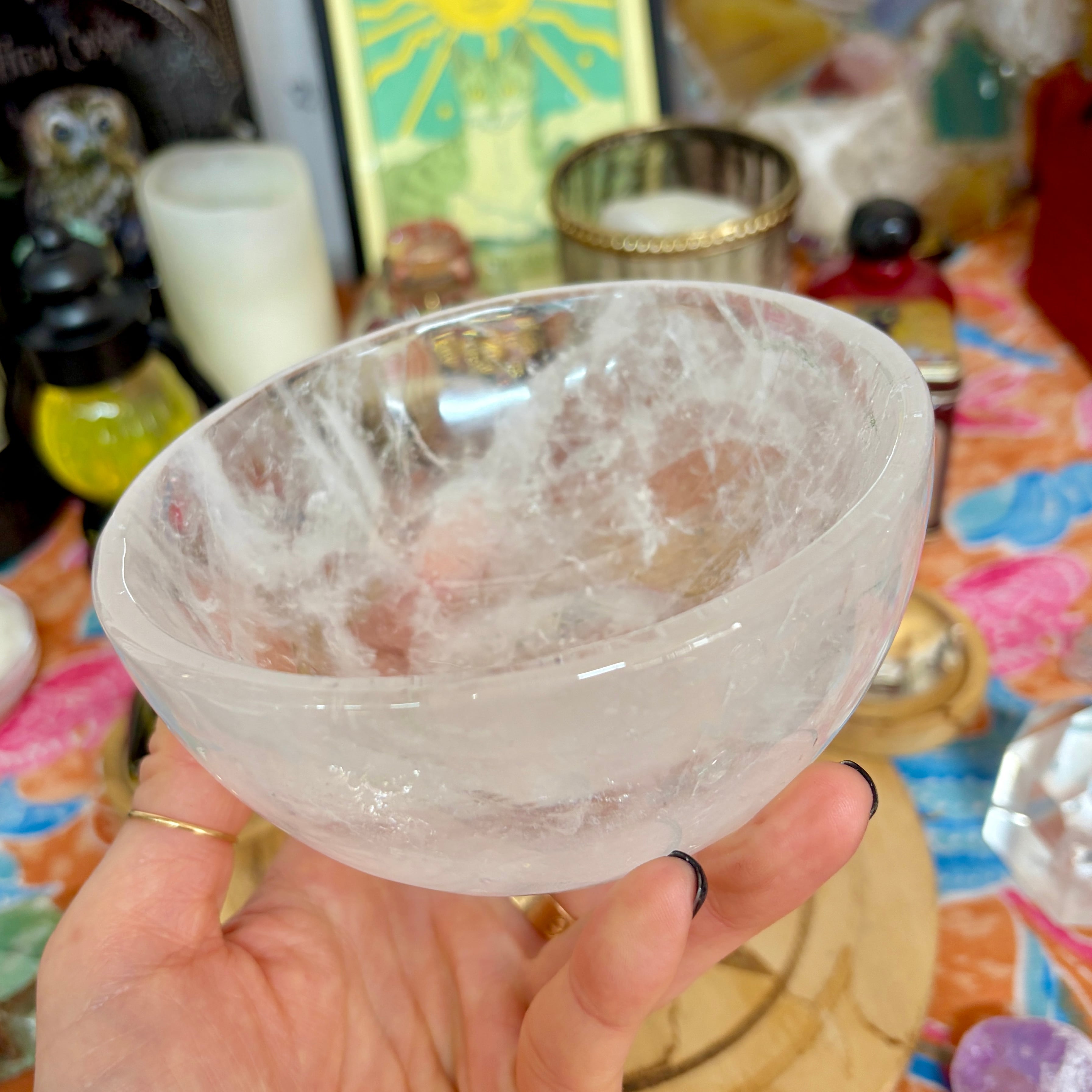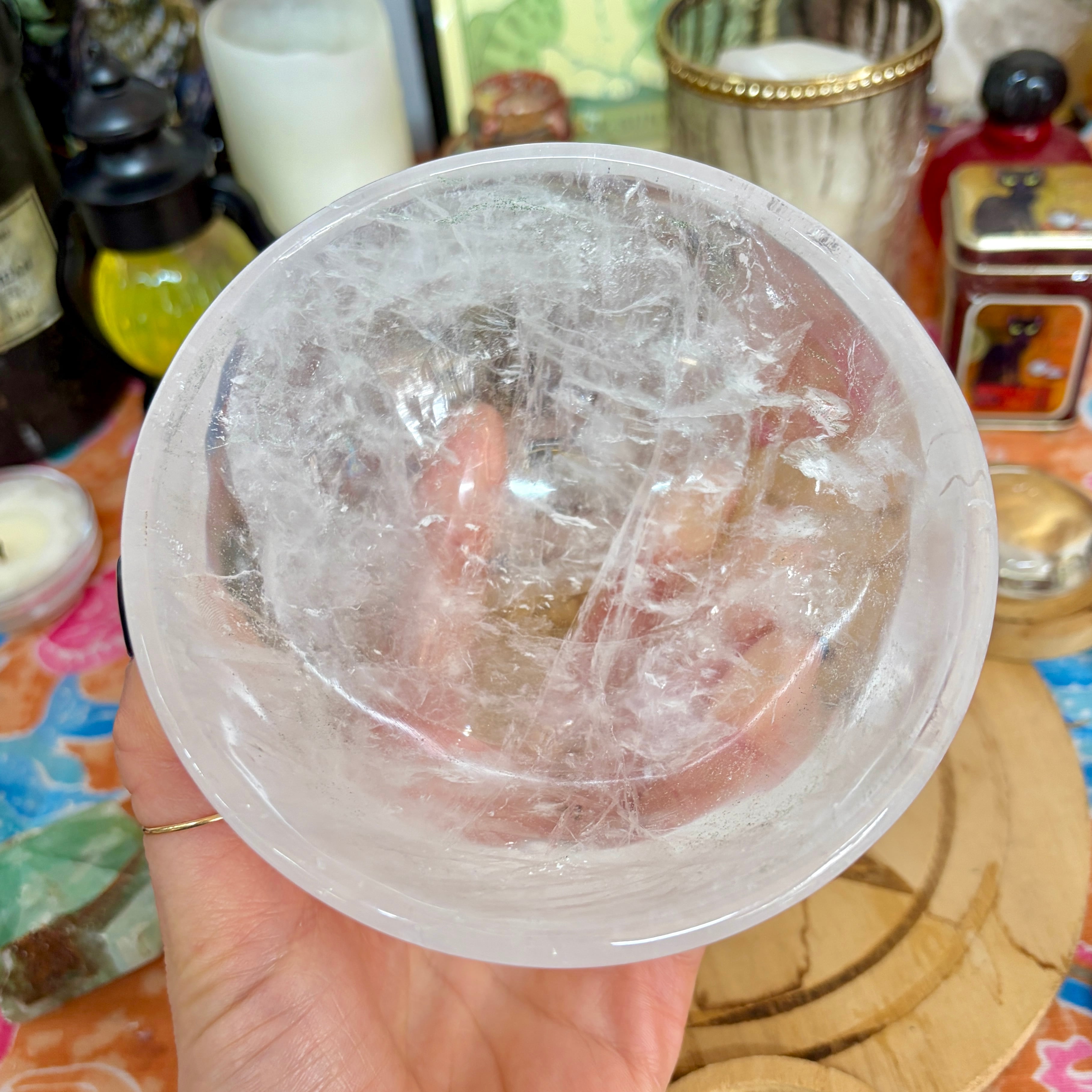 【魔女のお守り調合ボウル】クリア感が美しいクォーツのラウンド型の天然石ボウル B