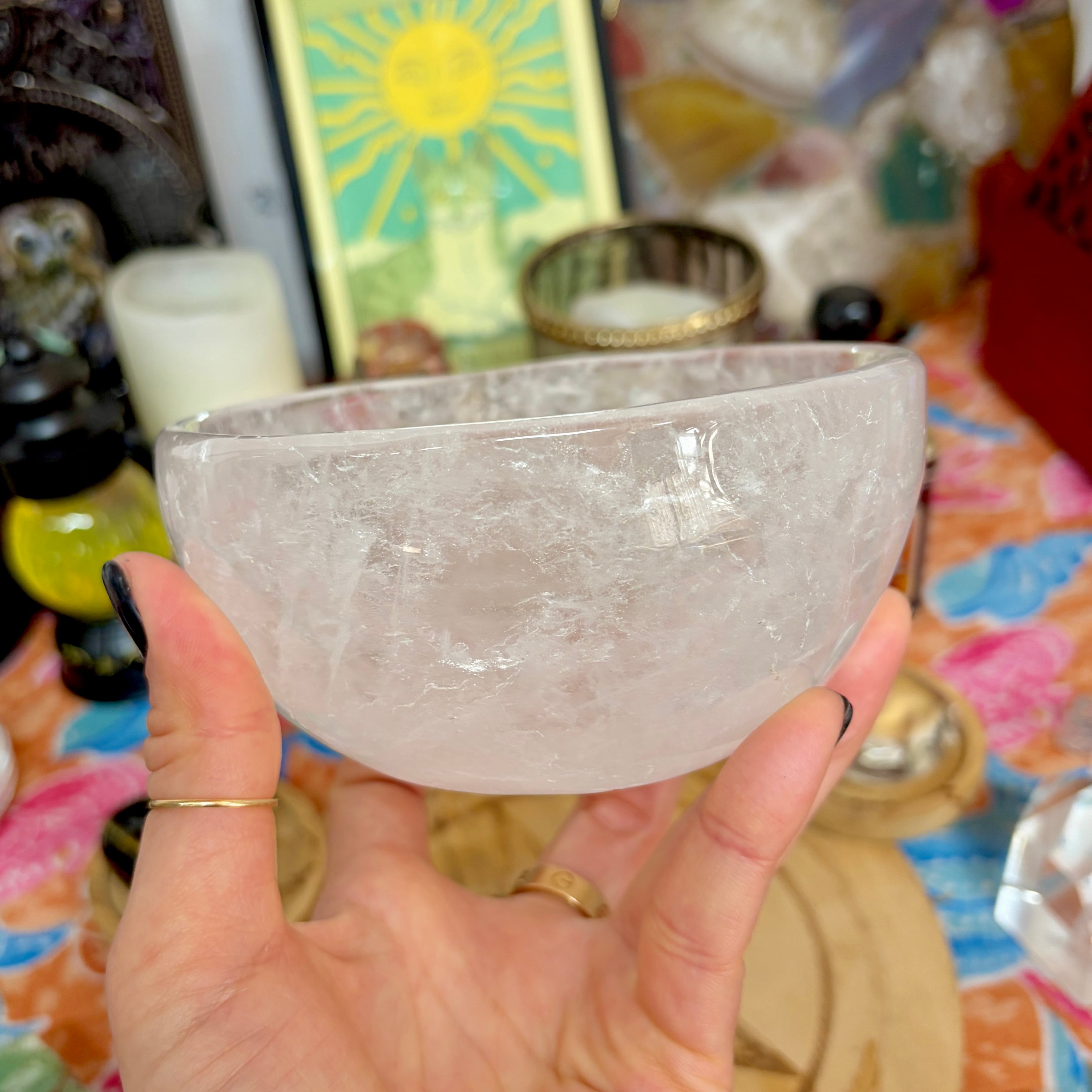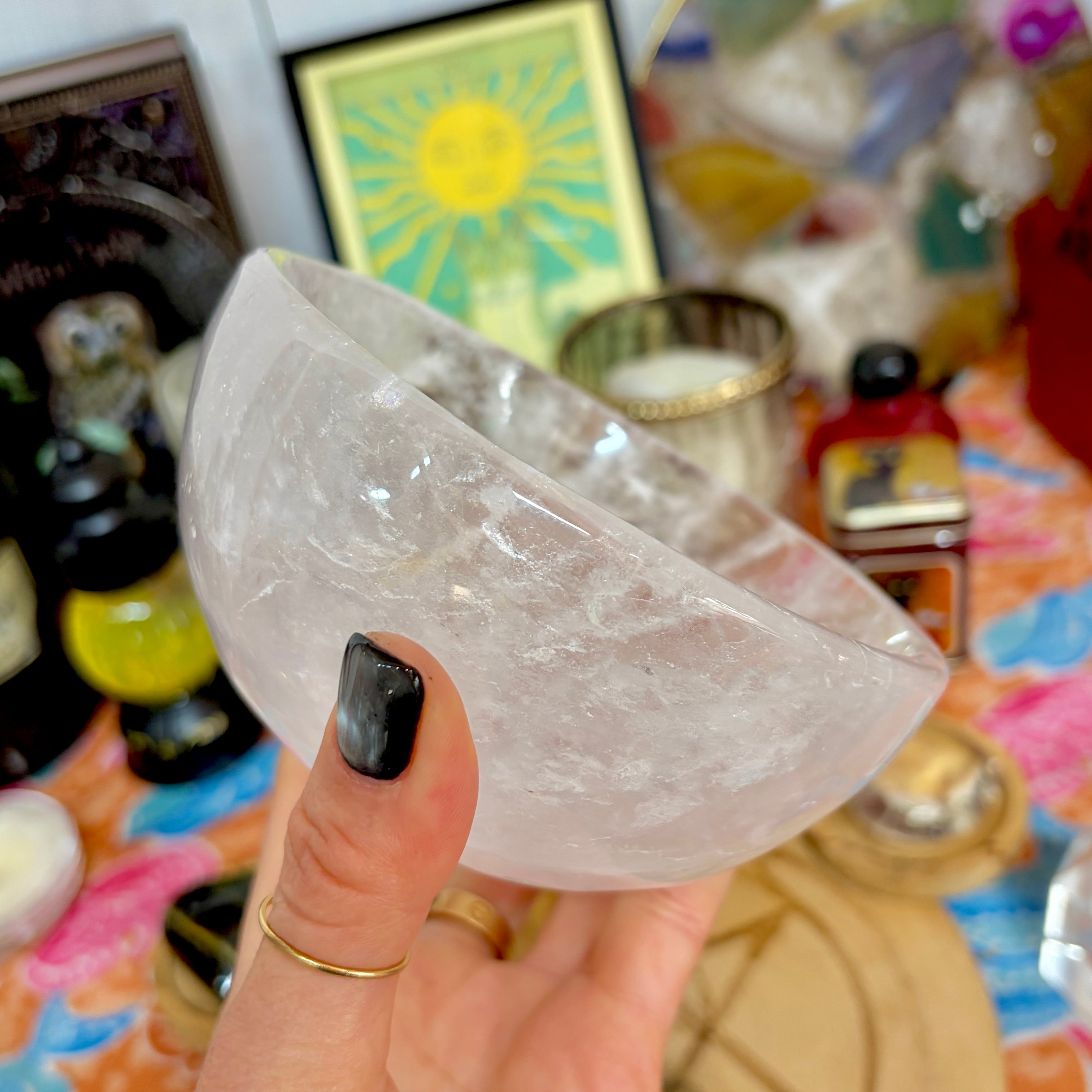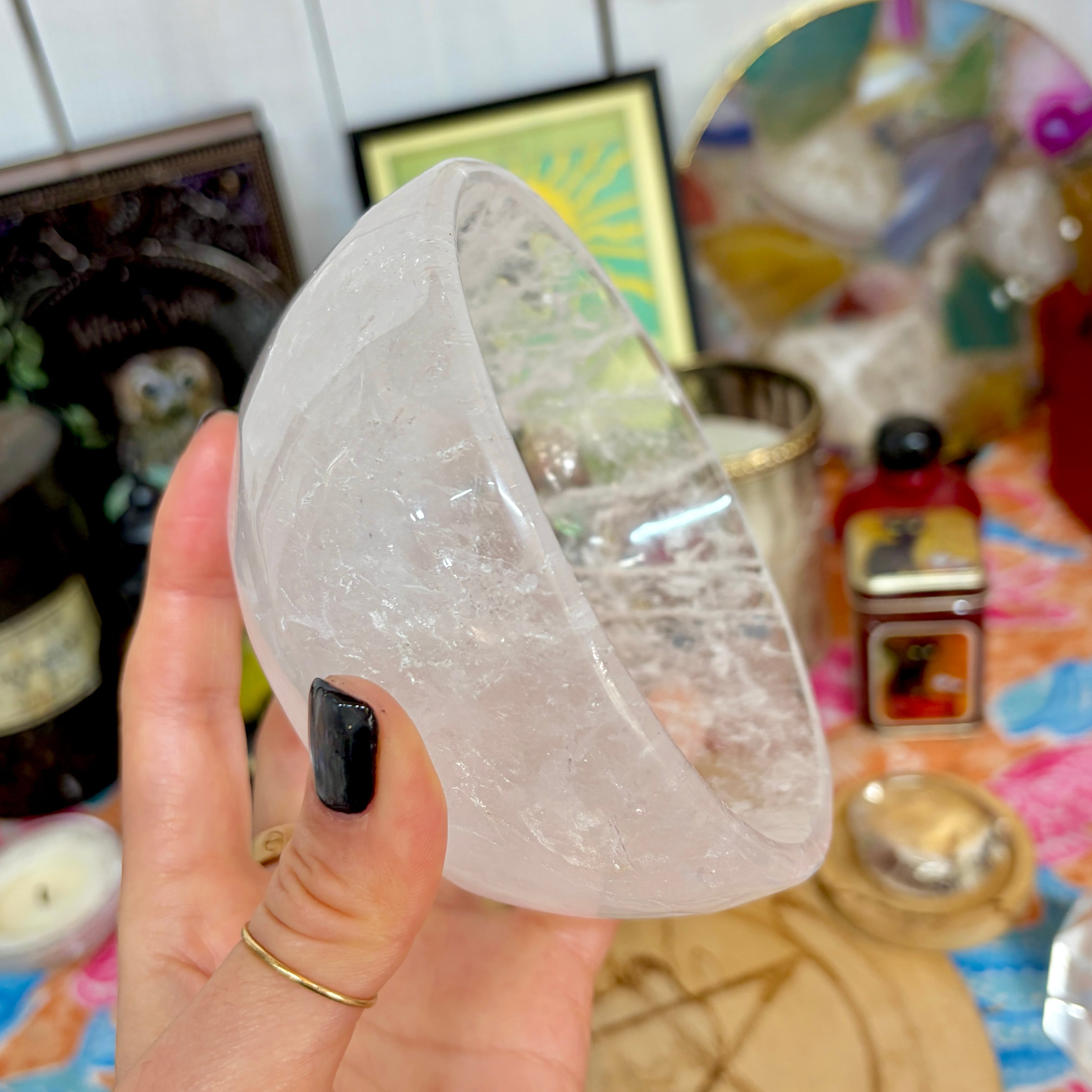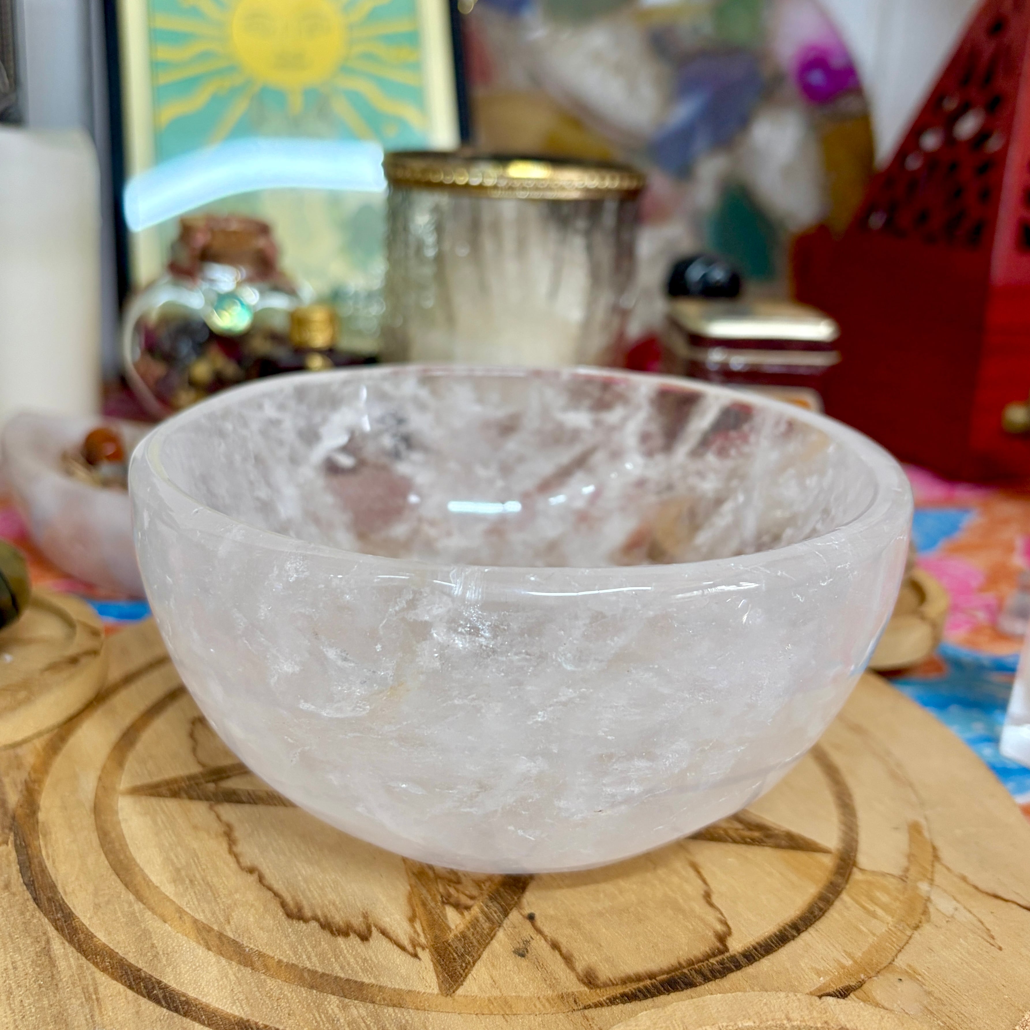 【魔女のお守り調合ボウル】クリア感が美しいクォーツのラウンド型の天然石ボウル A