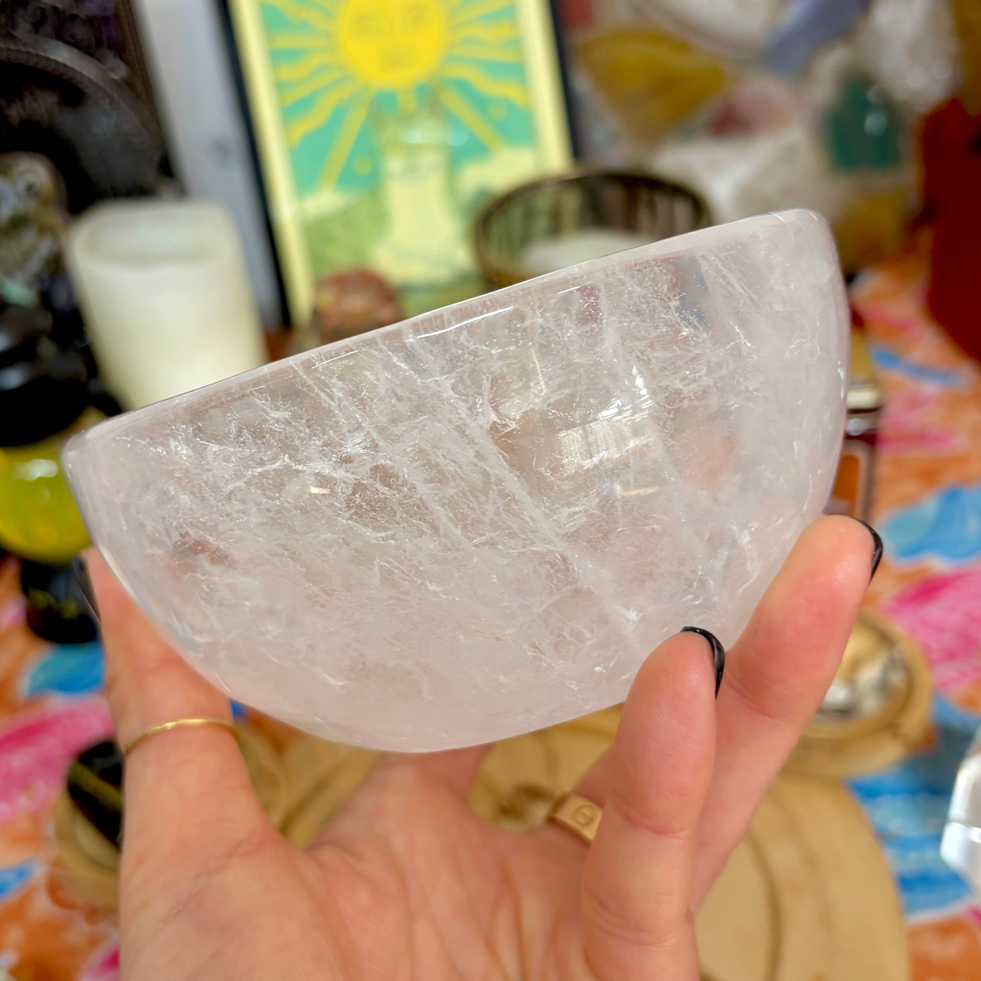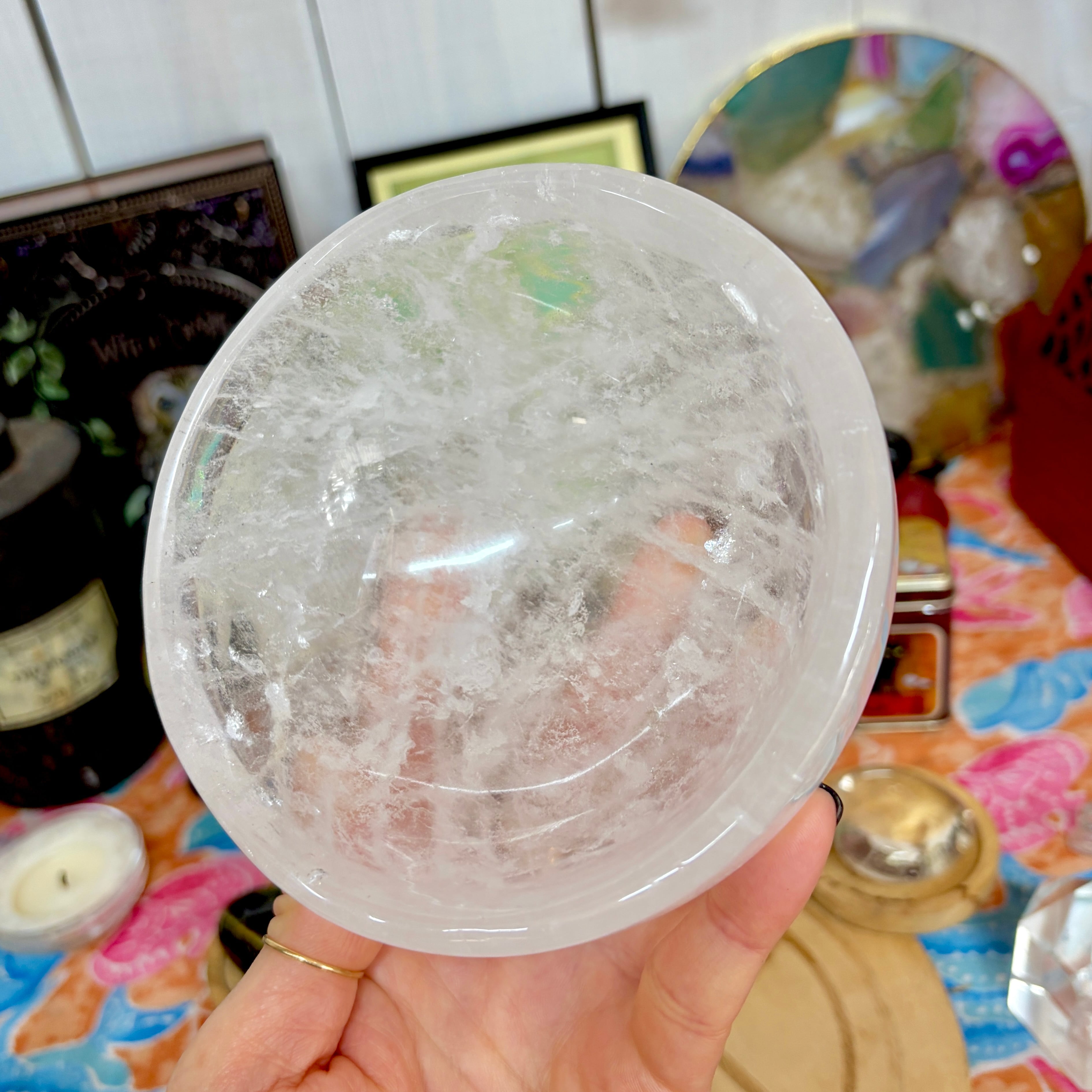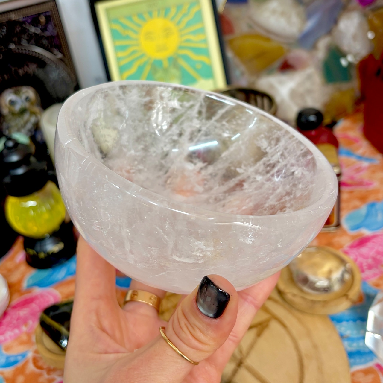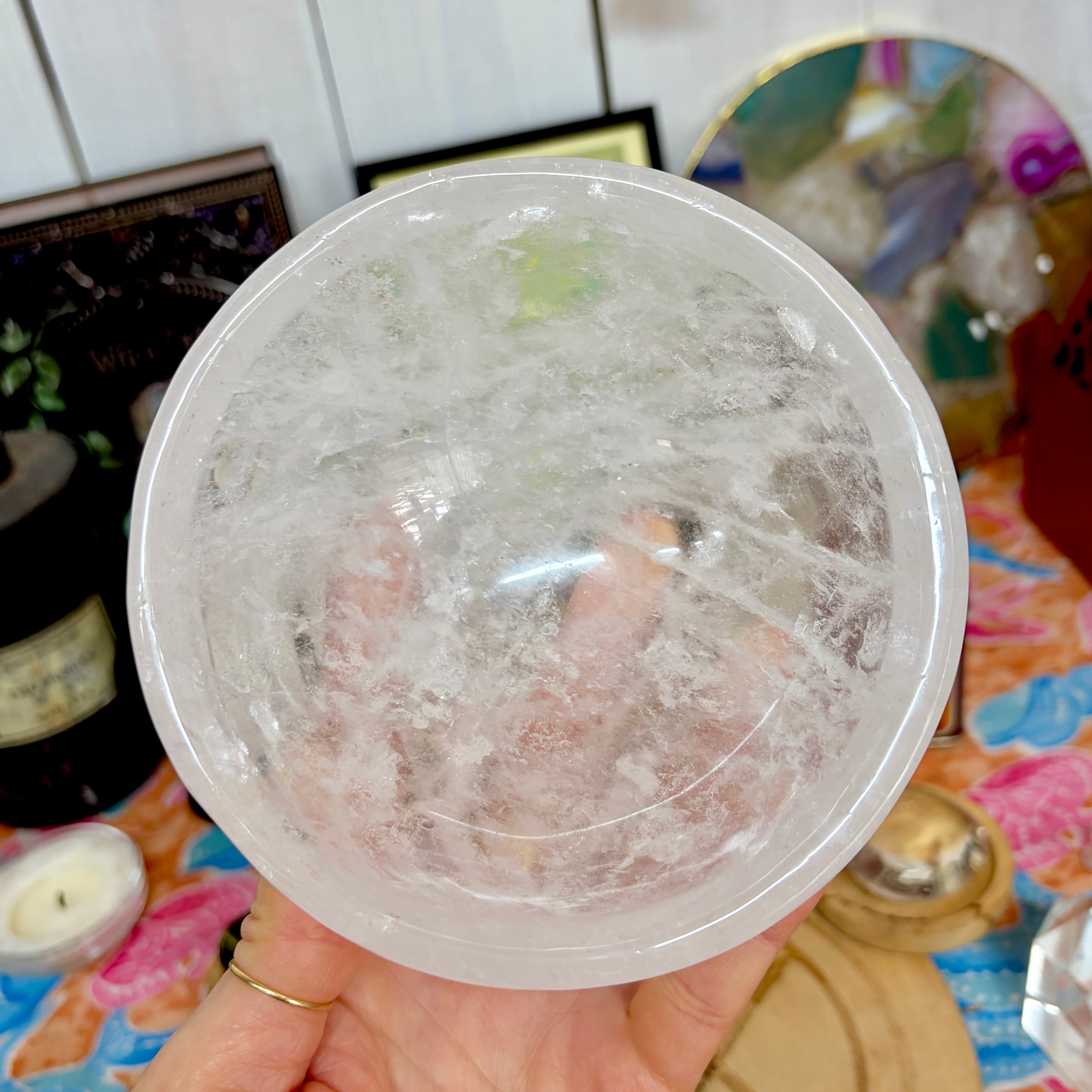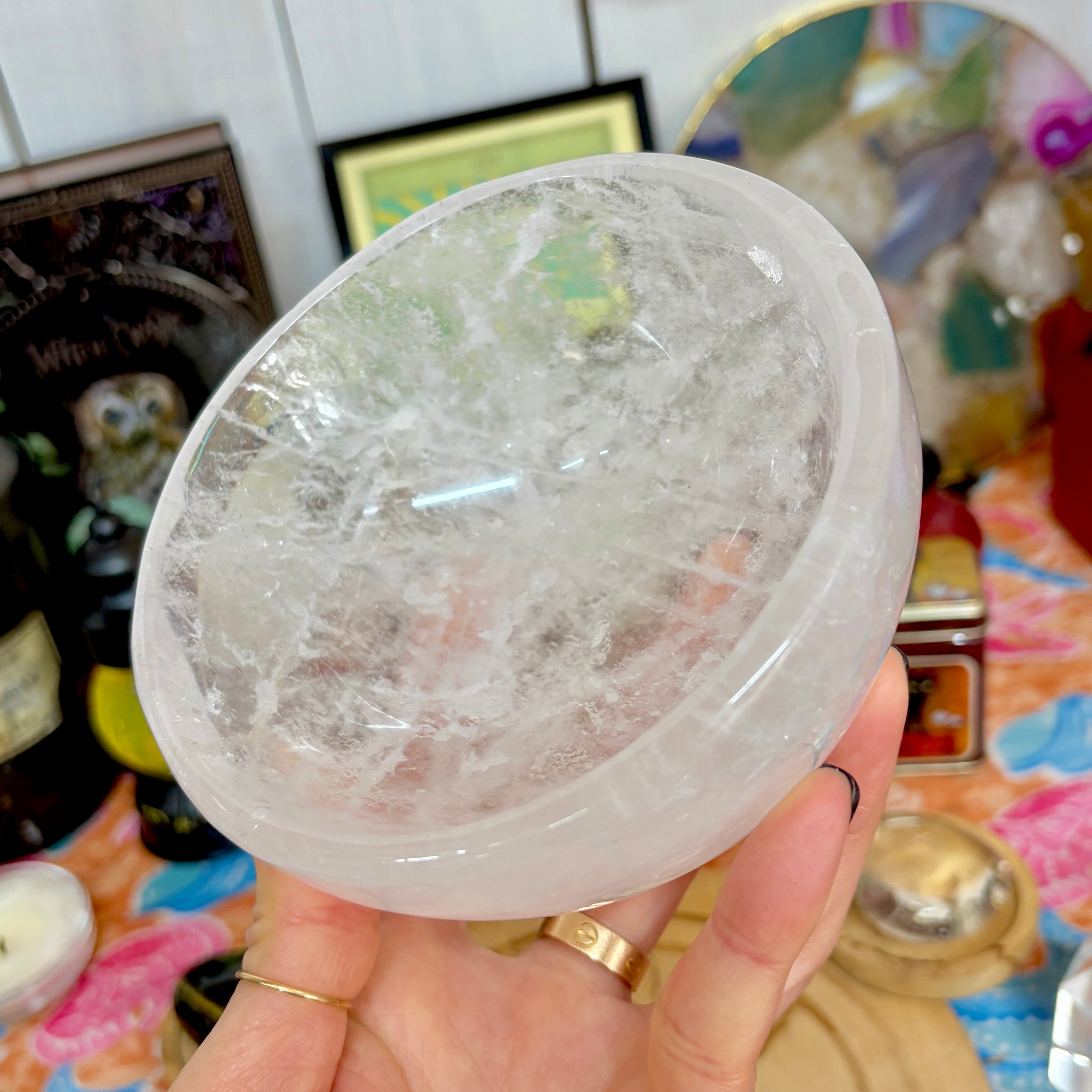 【魔女のお守り調合ボウル】クリア感が美しいクォーツのラウンド型の天然石ボウル A