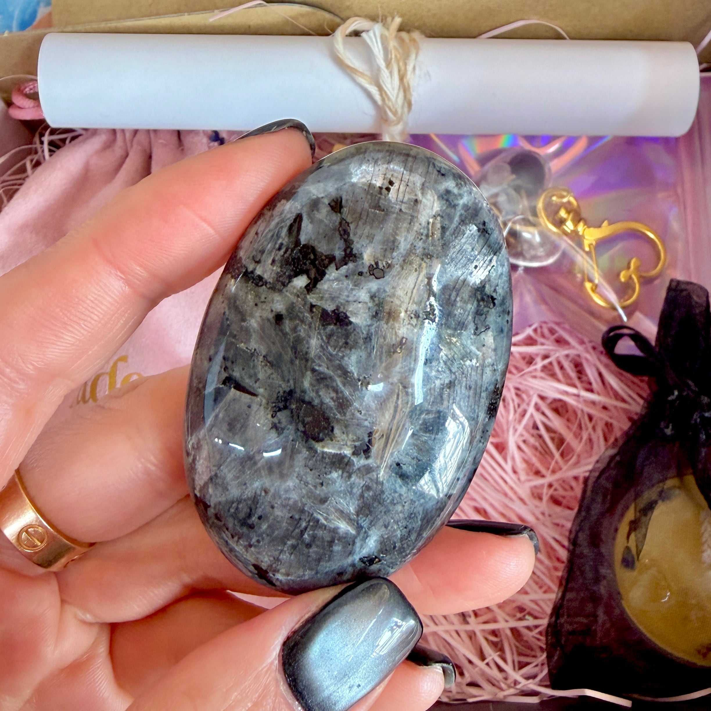 妖精の粉を振りかけて、黒い小箱に入れてお届けします。