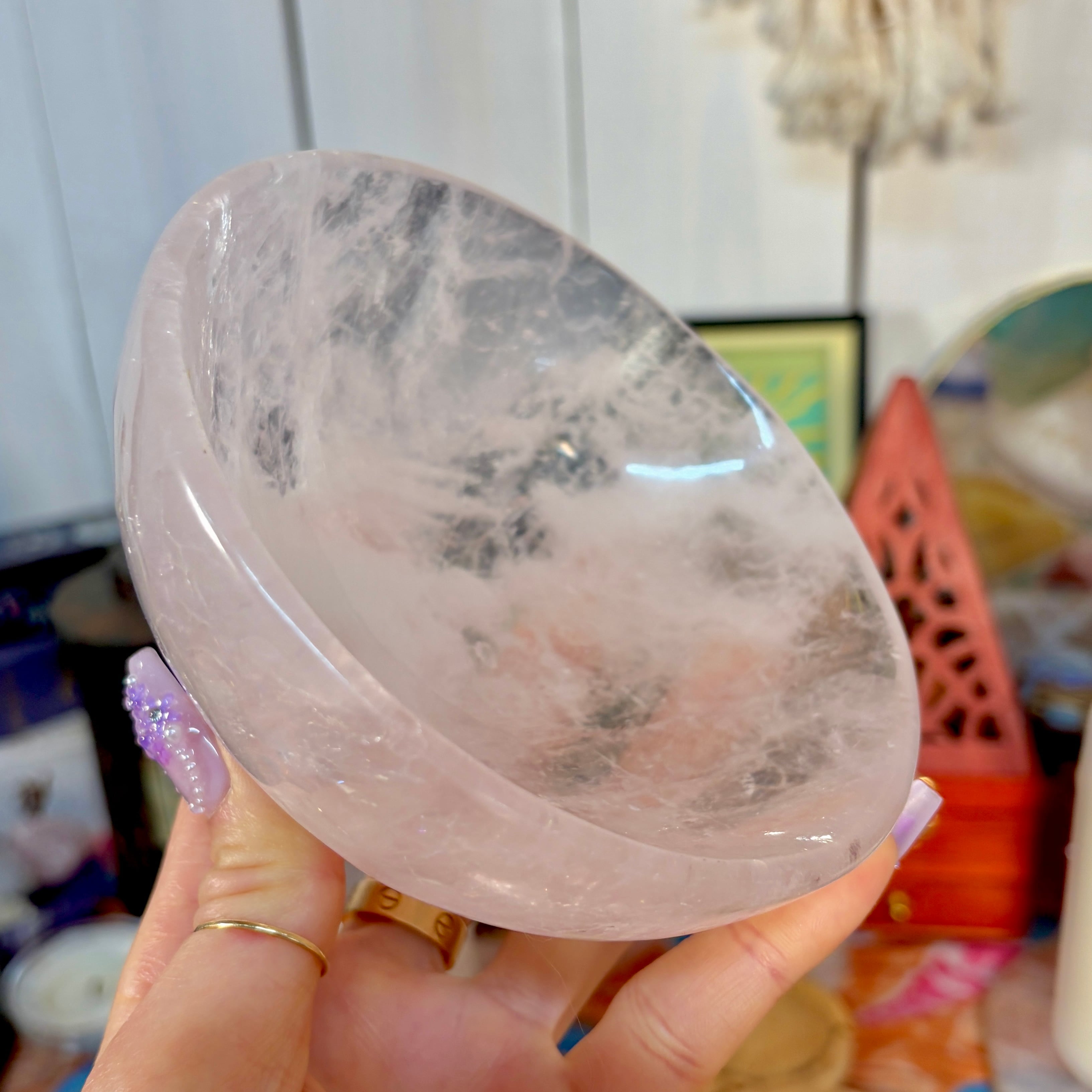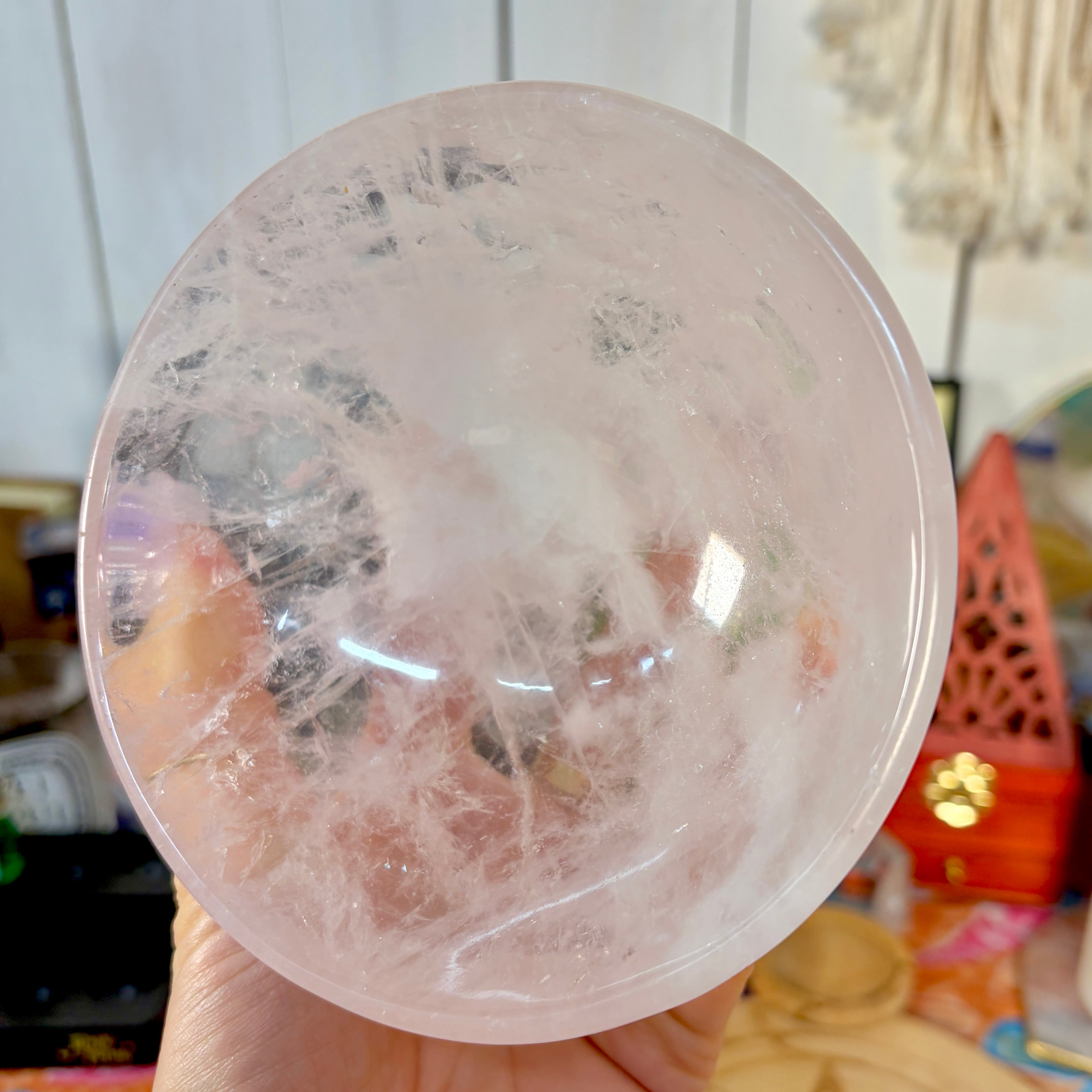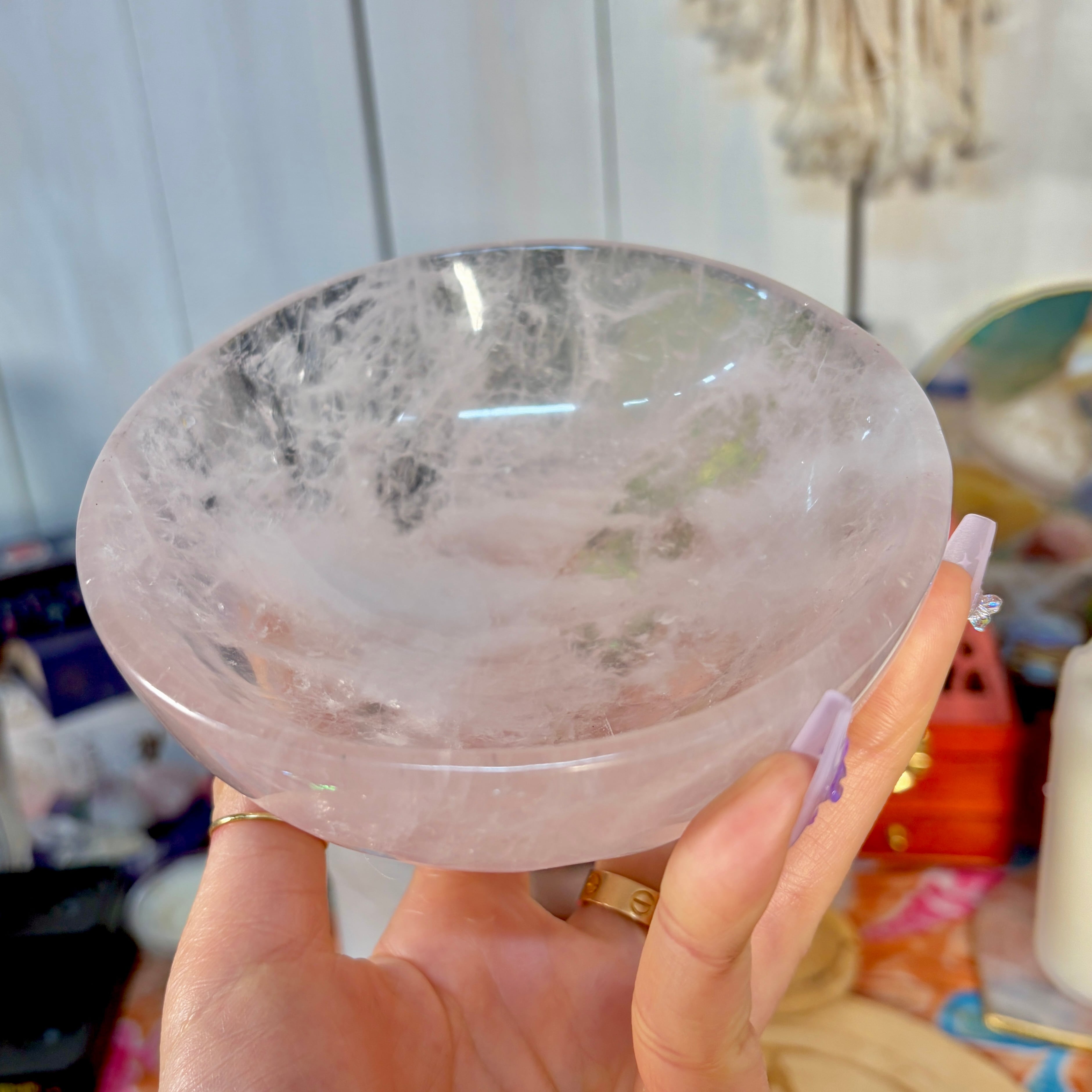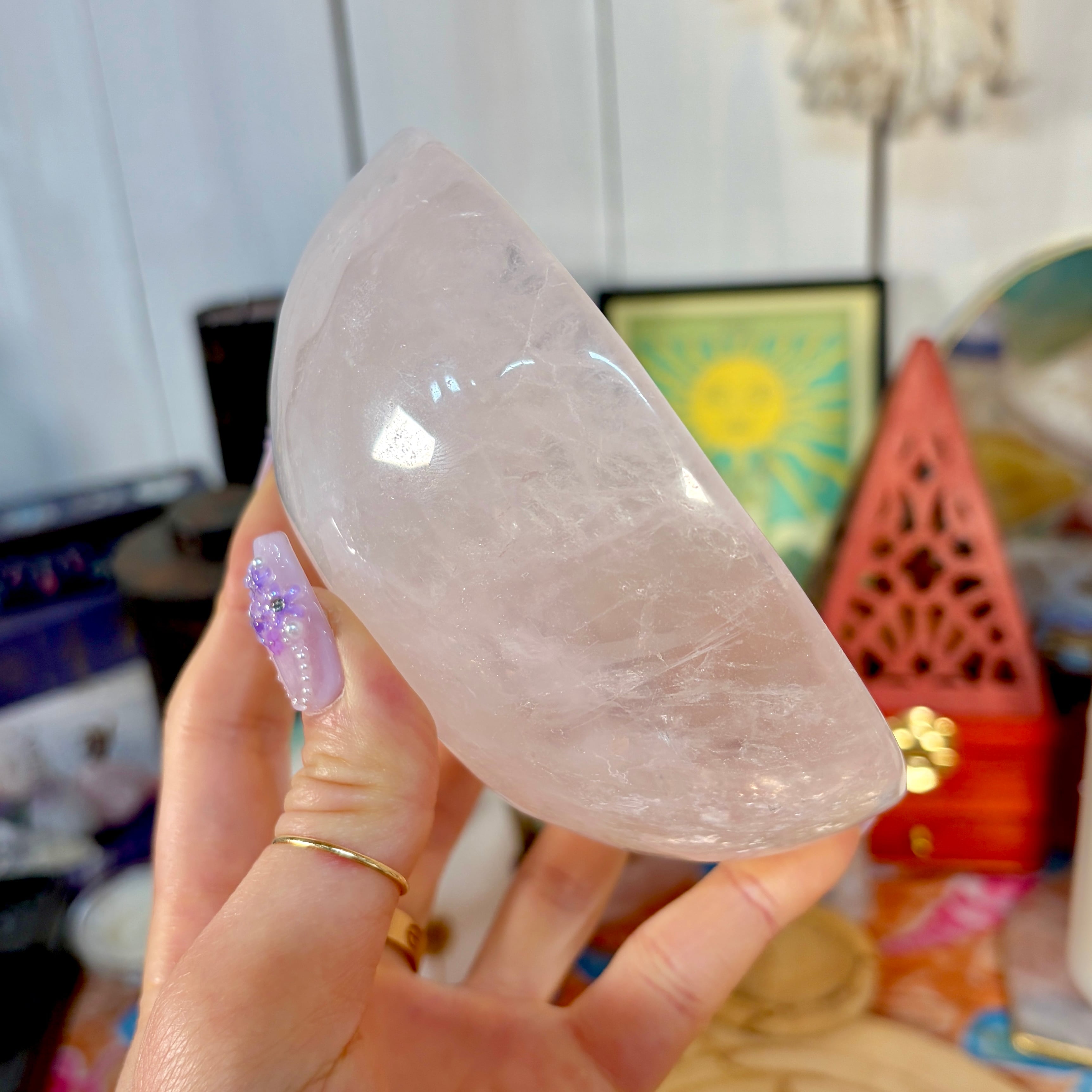 魔女のお守り調合ボウル。ボリューム感のあるどっしりとしたローズクォーツを大胆にラウンドカットした存在感のあるころんとした可愛いデザインのボウルです。