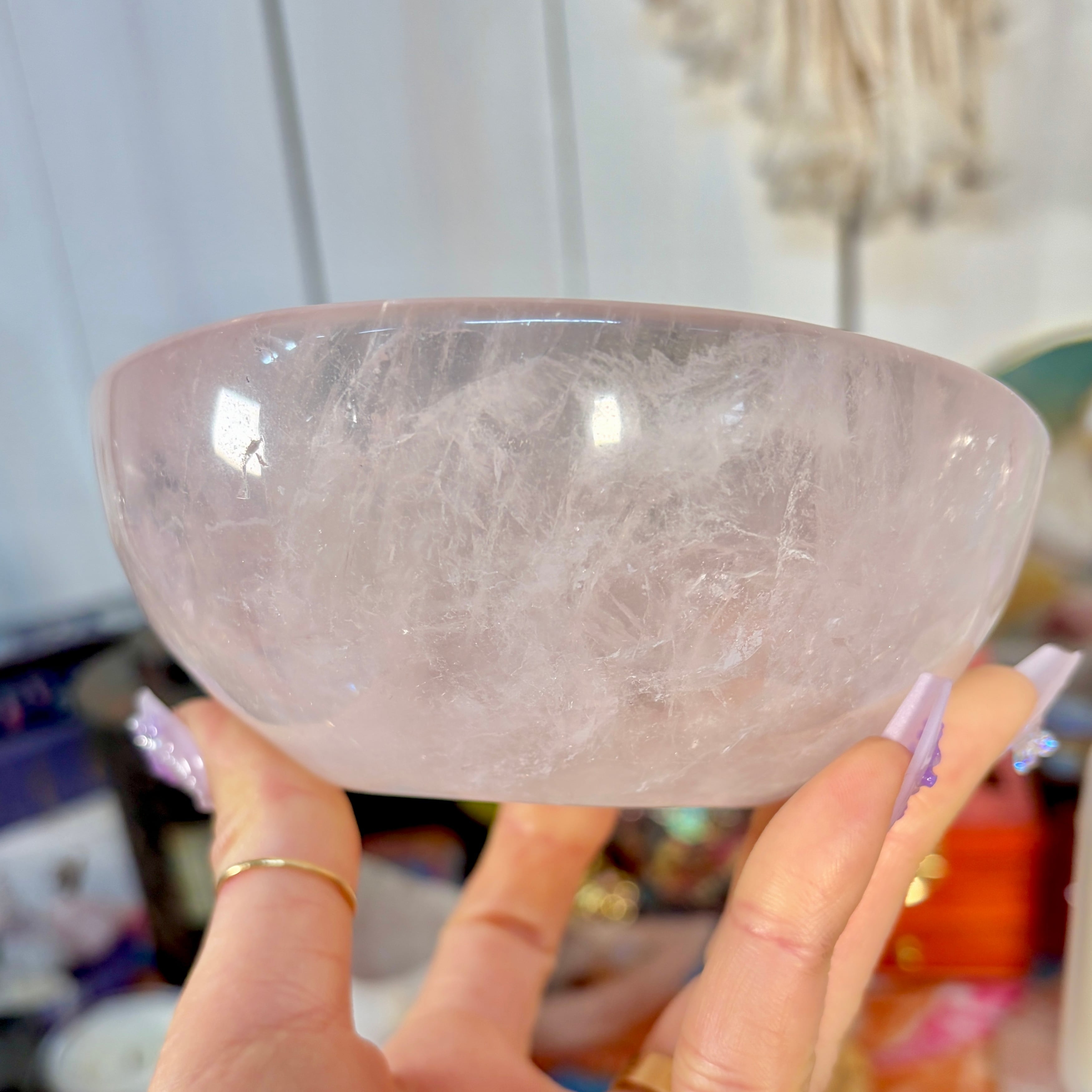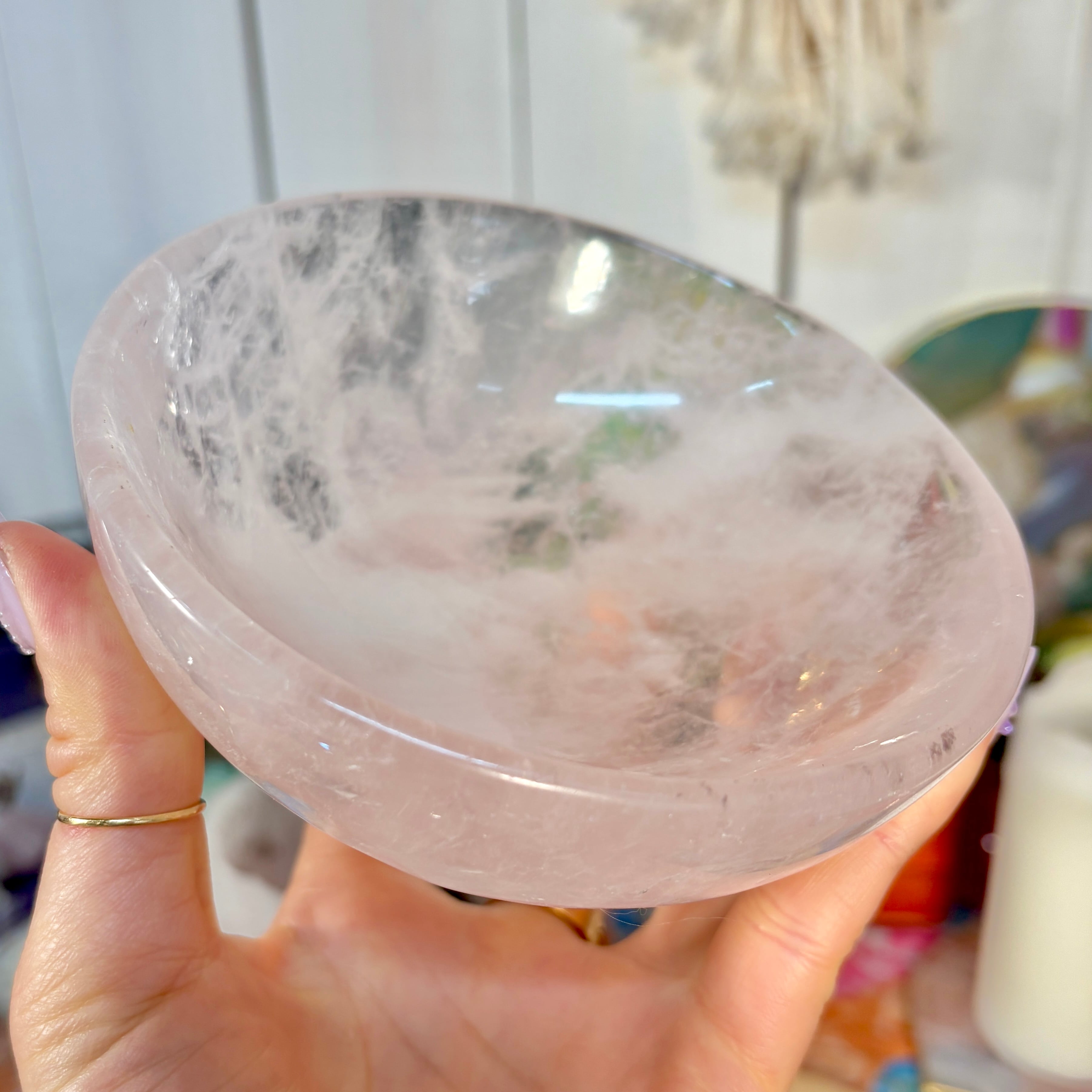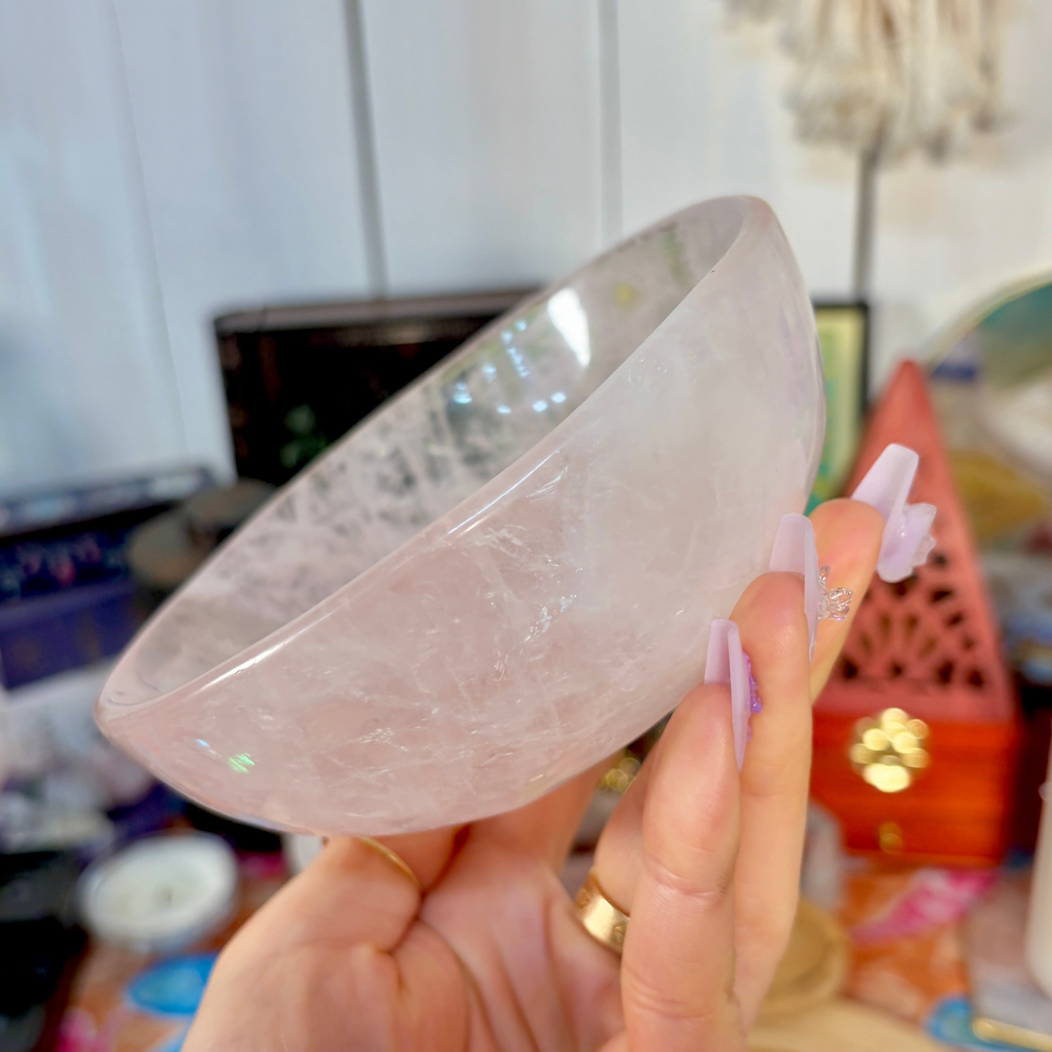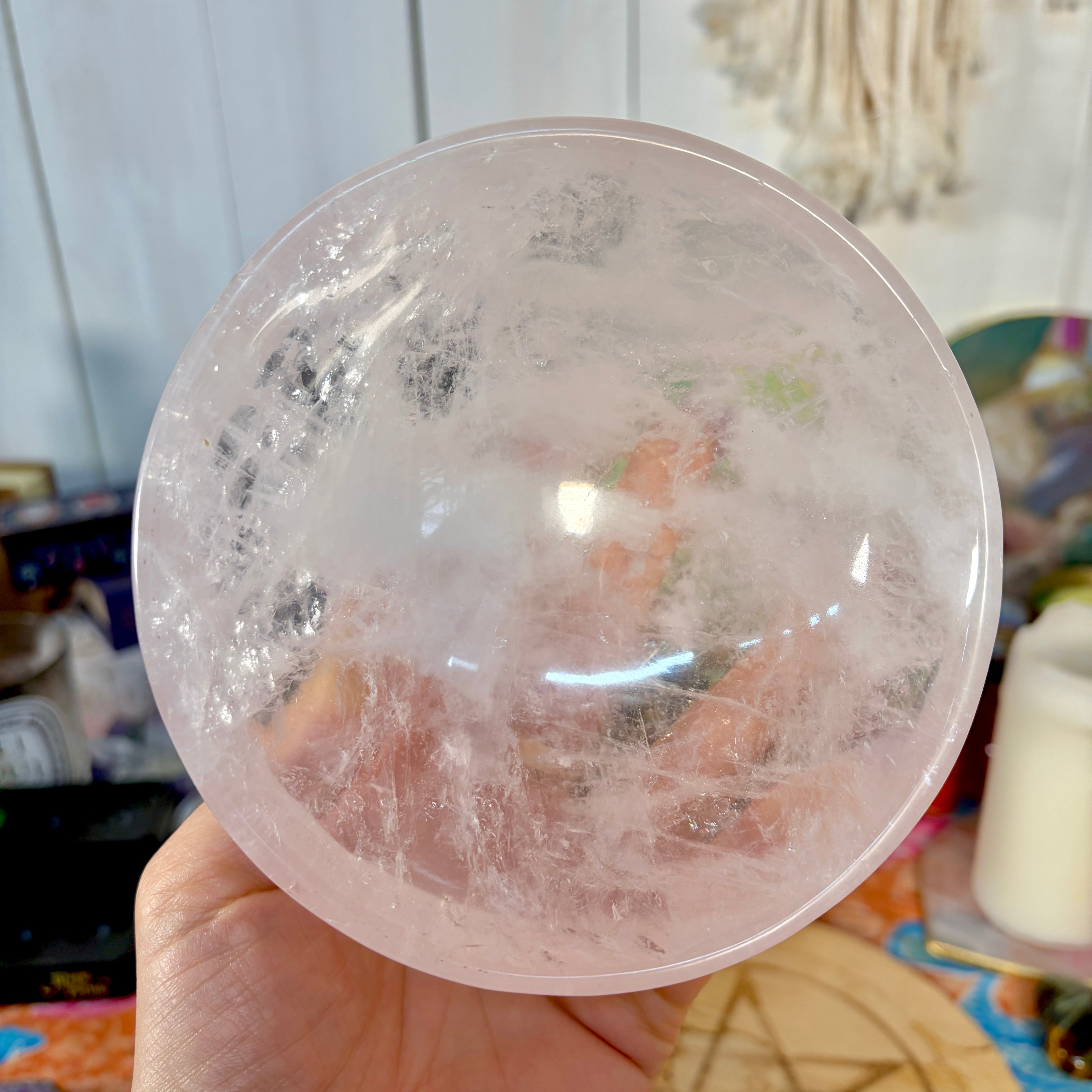 魔女のお守り調合ボウル。ボリューム感のあるどっしりとしたローズクォーツを大胆にラウンドカットした存在感のあるころんとした可愛いデザインのボウルです。