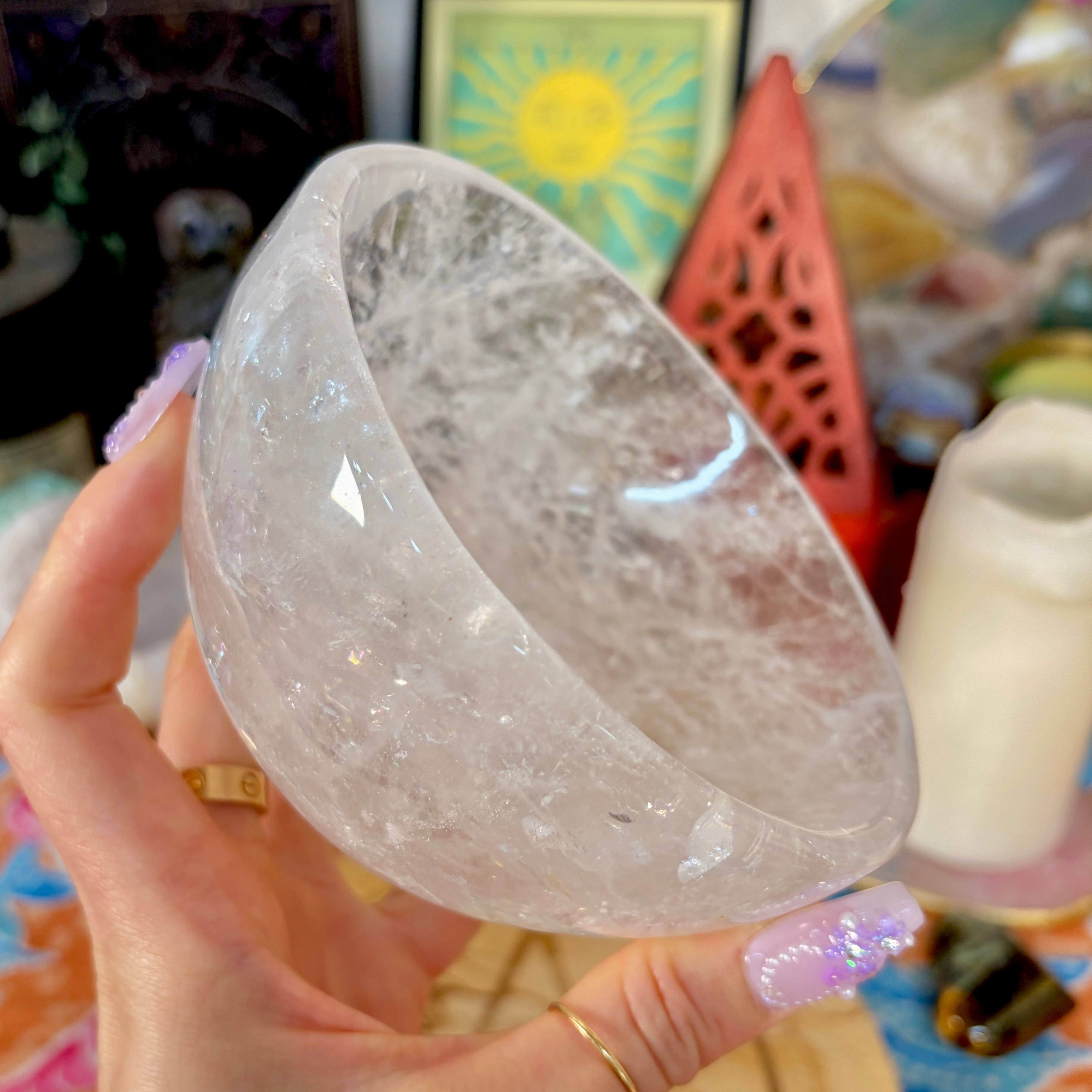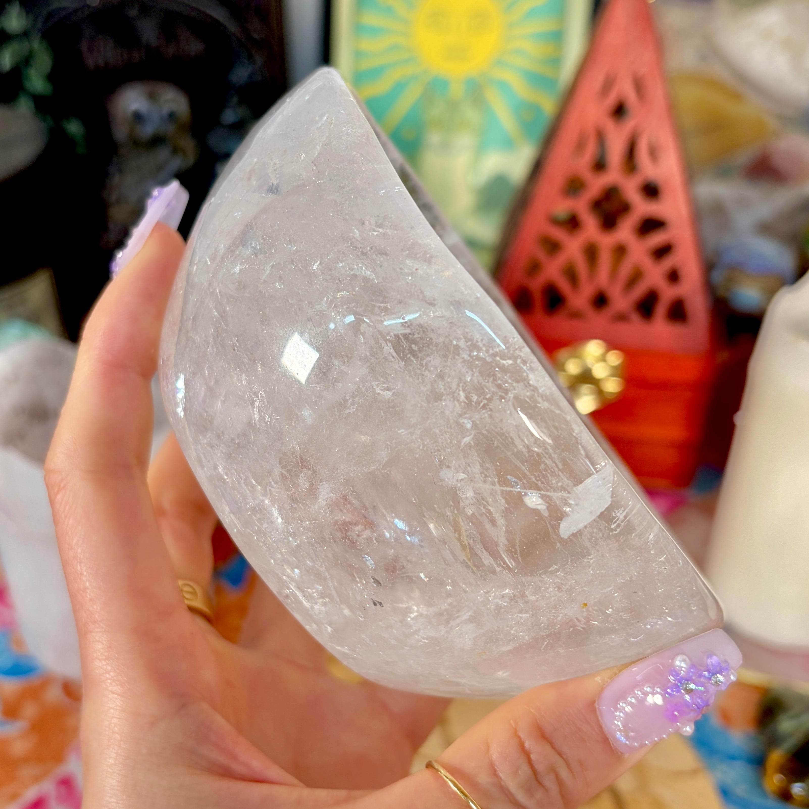 新月を思わせるクリア感の強いとても美しい水晶のボウルです。