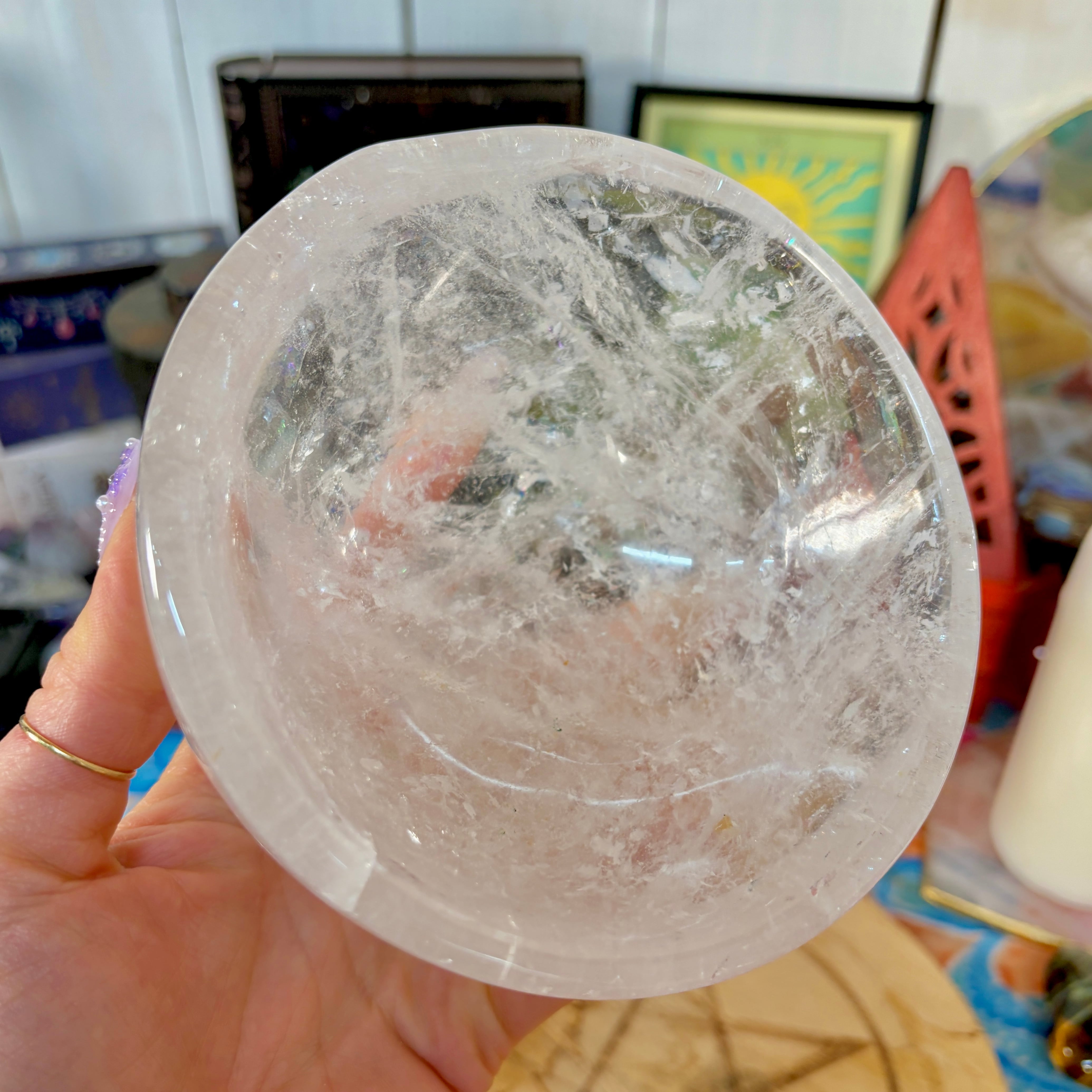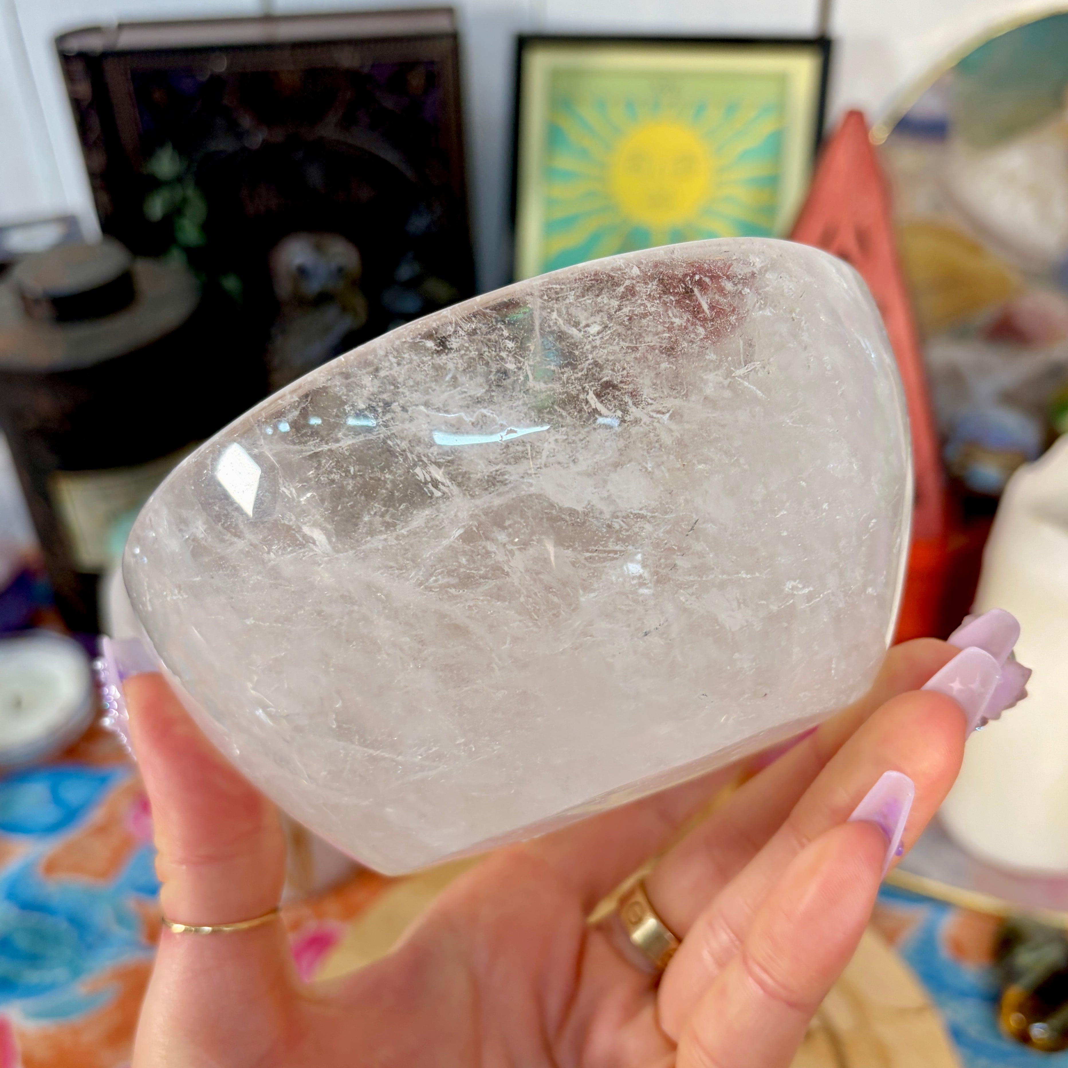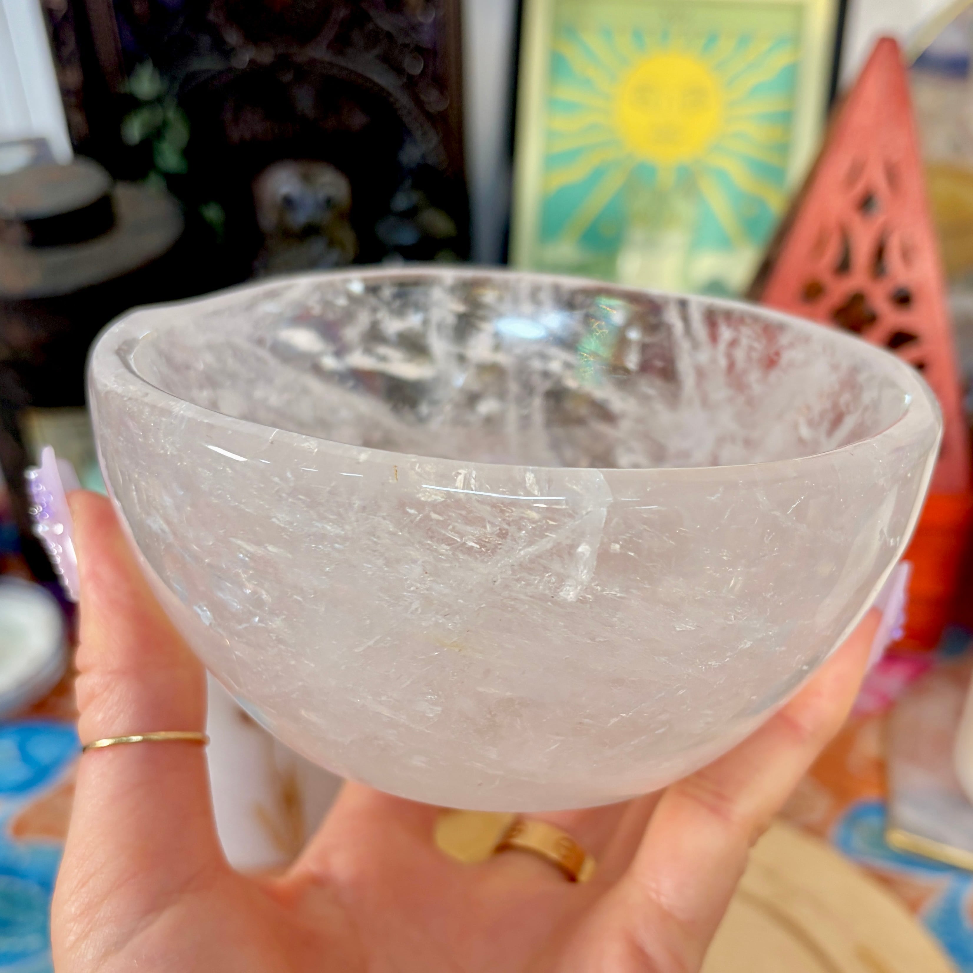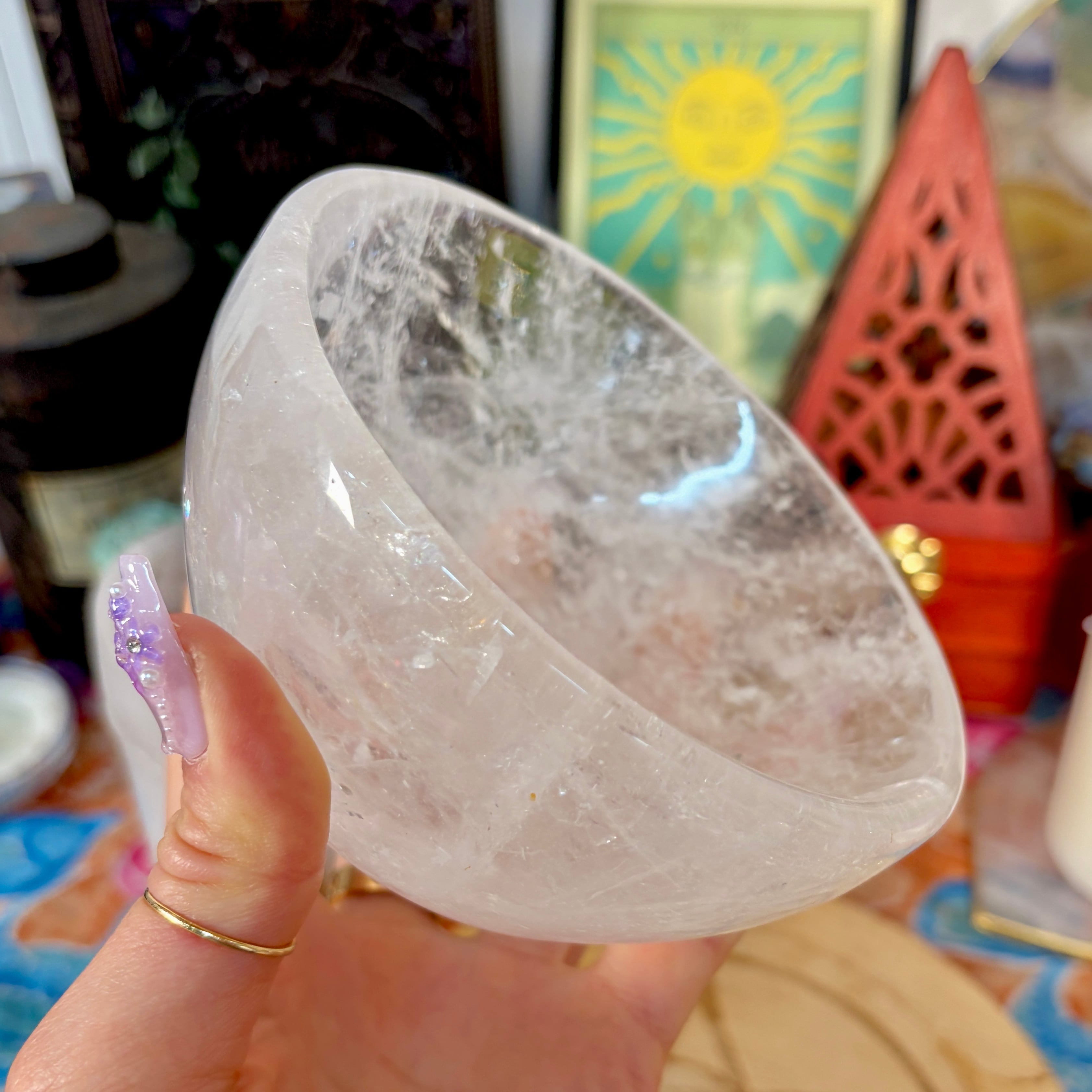 【魔女のお守り調合ボウル】クリア感が美しいクォーツのラウンド型の天然石ボウル A