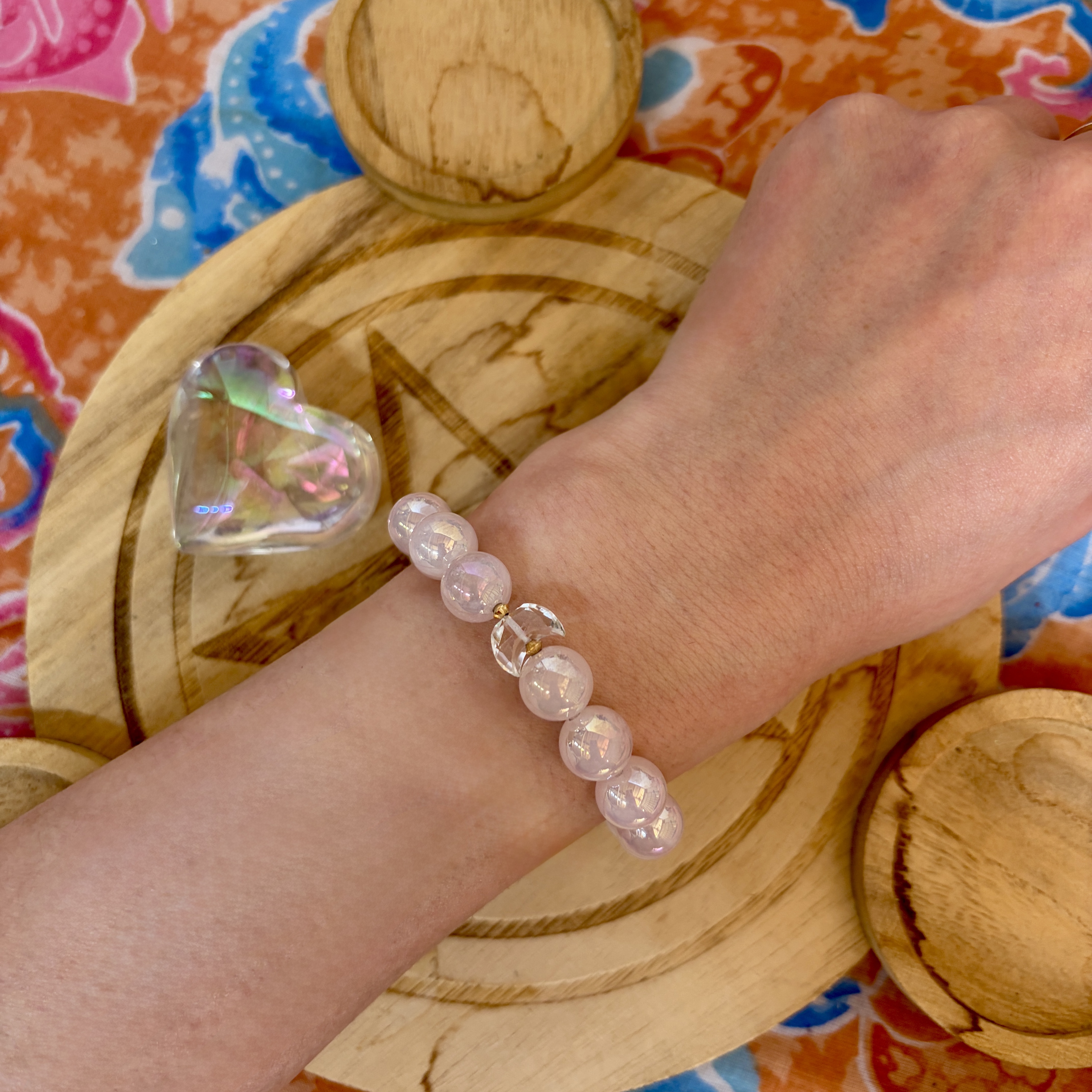 LUNA bracelet 〜 Venus(オーラローズクォーツ × クォーツ/水晶)18K